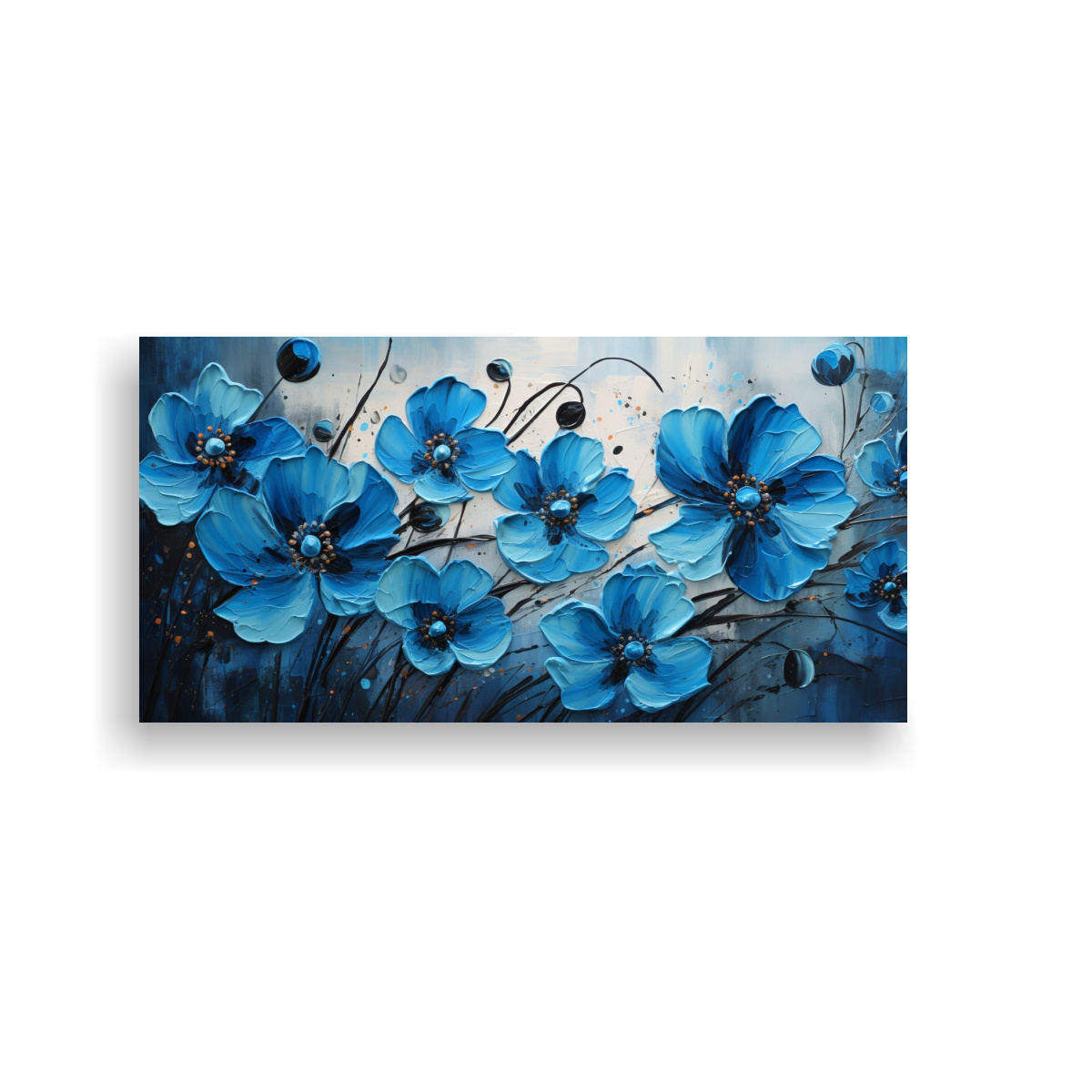 1 Cuadro Concepto Relieve: Flores En Negro Y Azul En Lienzo
