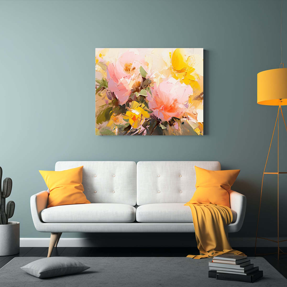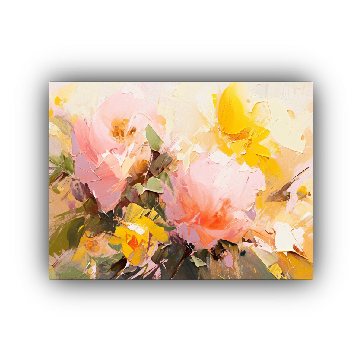 Renueva tus espacios con este cuadro de flores amarillas y rosas, ideal para dar un toque de color y elegancia Confeccionado en tela de alta calidad con bastidor de madera, garantizando durabilidad y resistencia Envíos rápidos y gratuitos en Santiago, ¡no te lo pierdas!