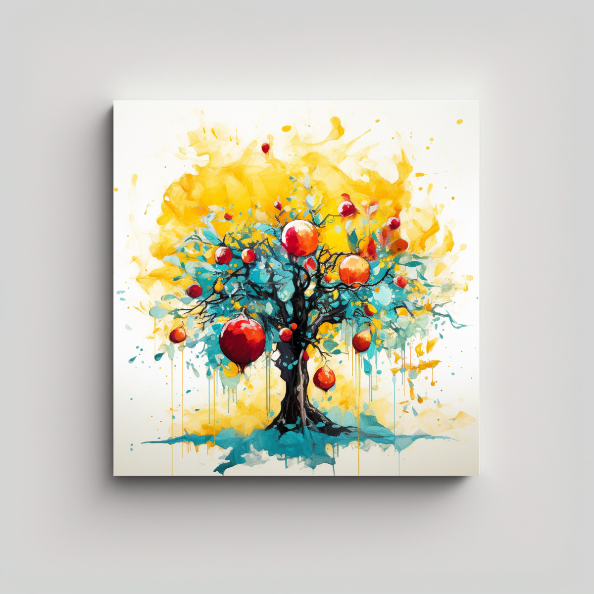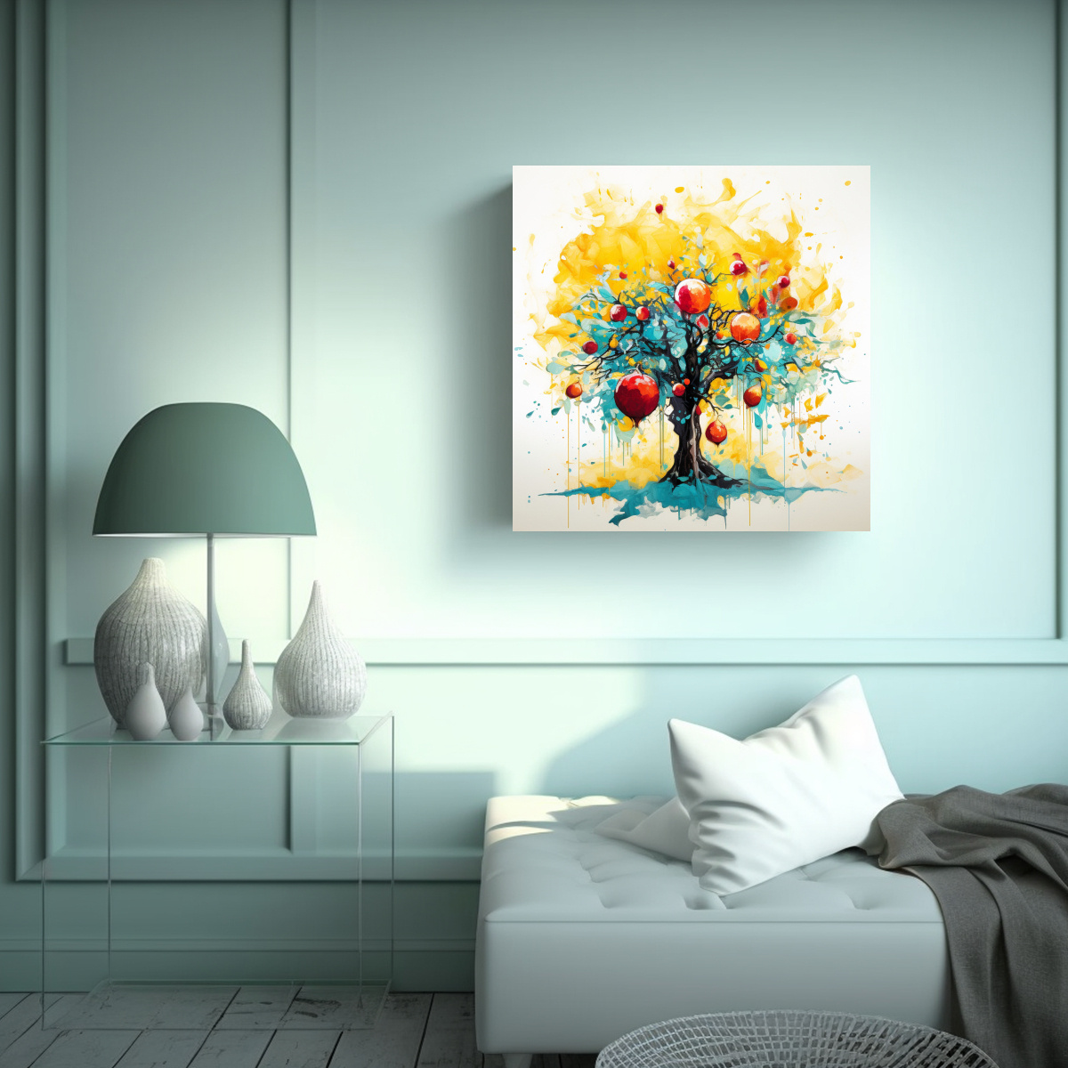 1 Cuadro Cuadro Árbol De Granada Amarillo Y Turquesa Colores Abstracto P