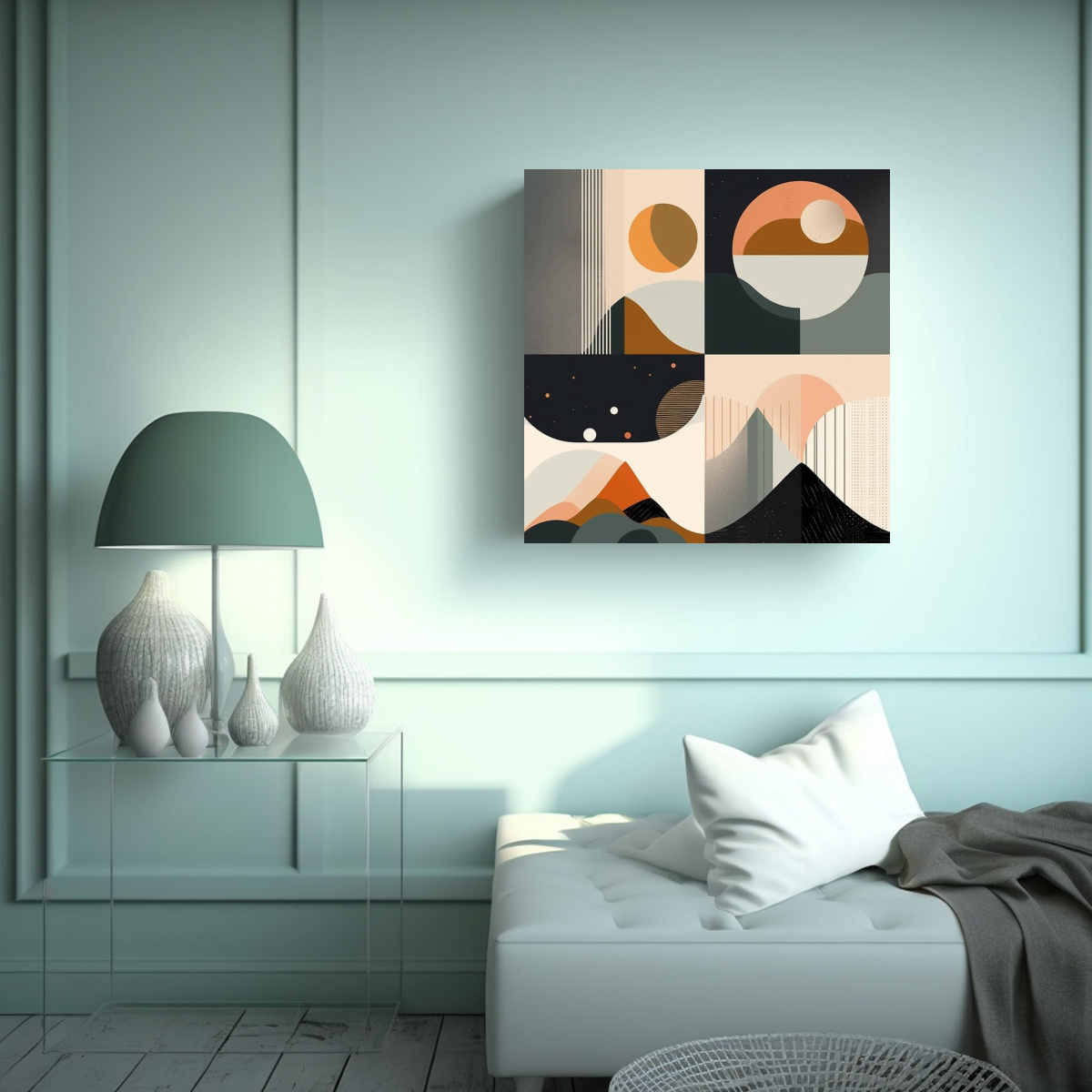 En DecoCuadros, encontrarás el cuadro de Geometría y Formas Orgánicas con Figuras y Naturaleza en tonos Chocolate, Beige, Gris, Azul Marino grisaceo y Coral Impresos en tela de alta calidad y con bastidores de madera Nuestros cuadros son ideales para darle un toque de elegancia y estilo a tus espacios