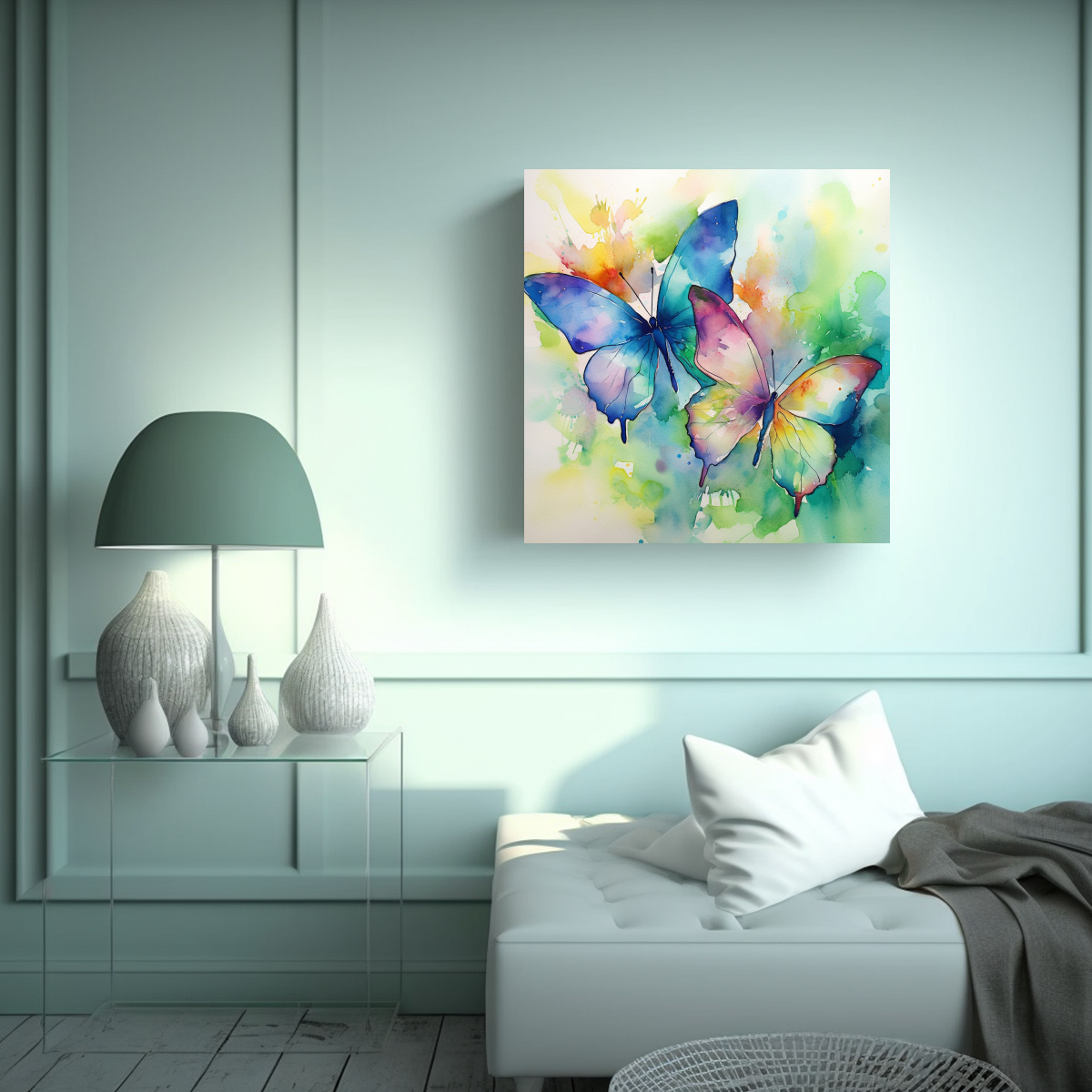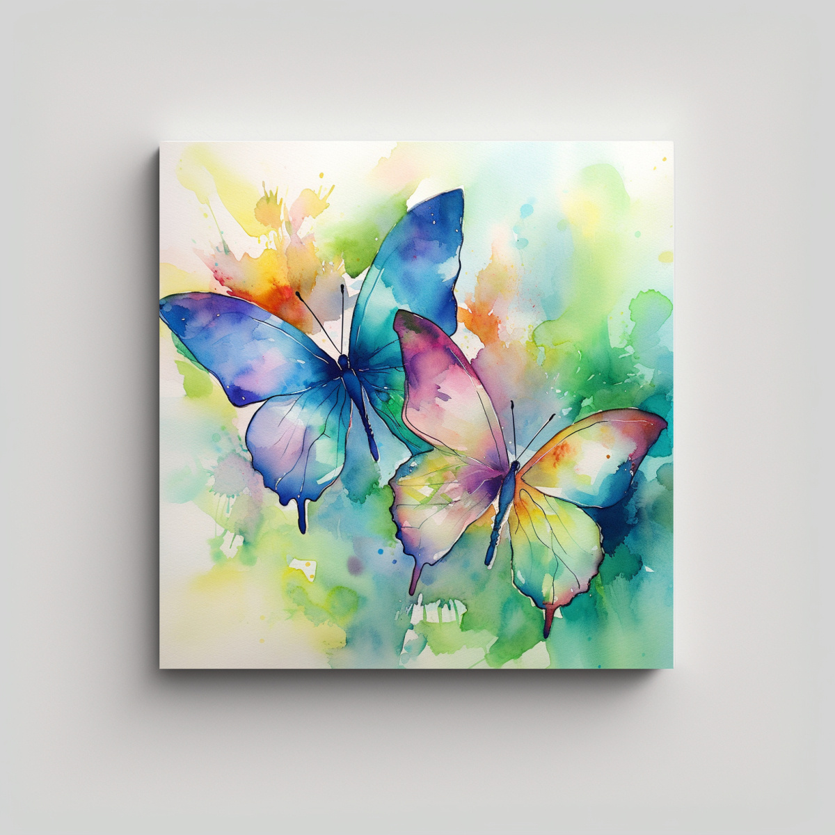Decora tu hogar con el cuadro Mariposas Acuarela Exposición 916 de DecoCuadros Impreso en tela de alta calidad con bastidores de madera, este cuadro te ofrece la mejor calidad y diseño exclusivo al mejor precio del mercado Envío rápido y gratis en Santiago, y envíos express a regiones ¡No busques más, tenemos lo que necesitas!