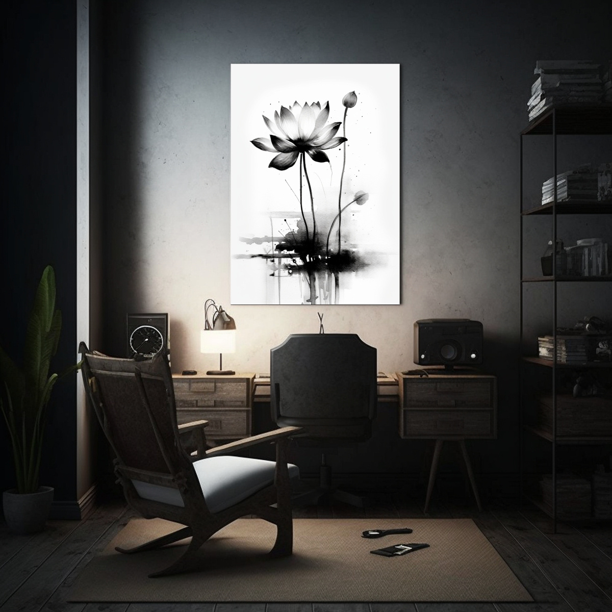 Convierte tu hogar en un espacio elegante y moderno con este cuadro de loto en tinta china de DecoCuadros Envío gratis en Santiago y entregas rápidas en todo el país
