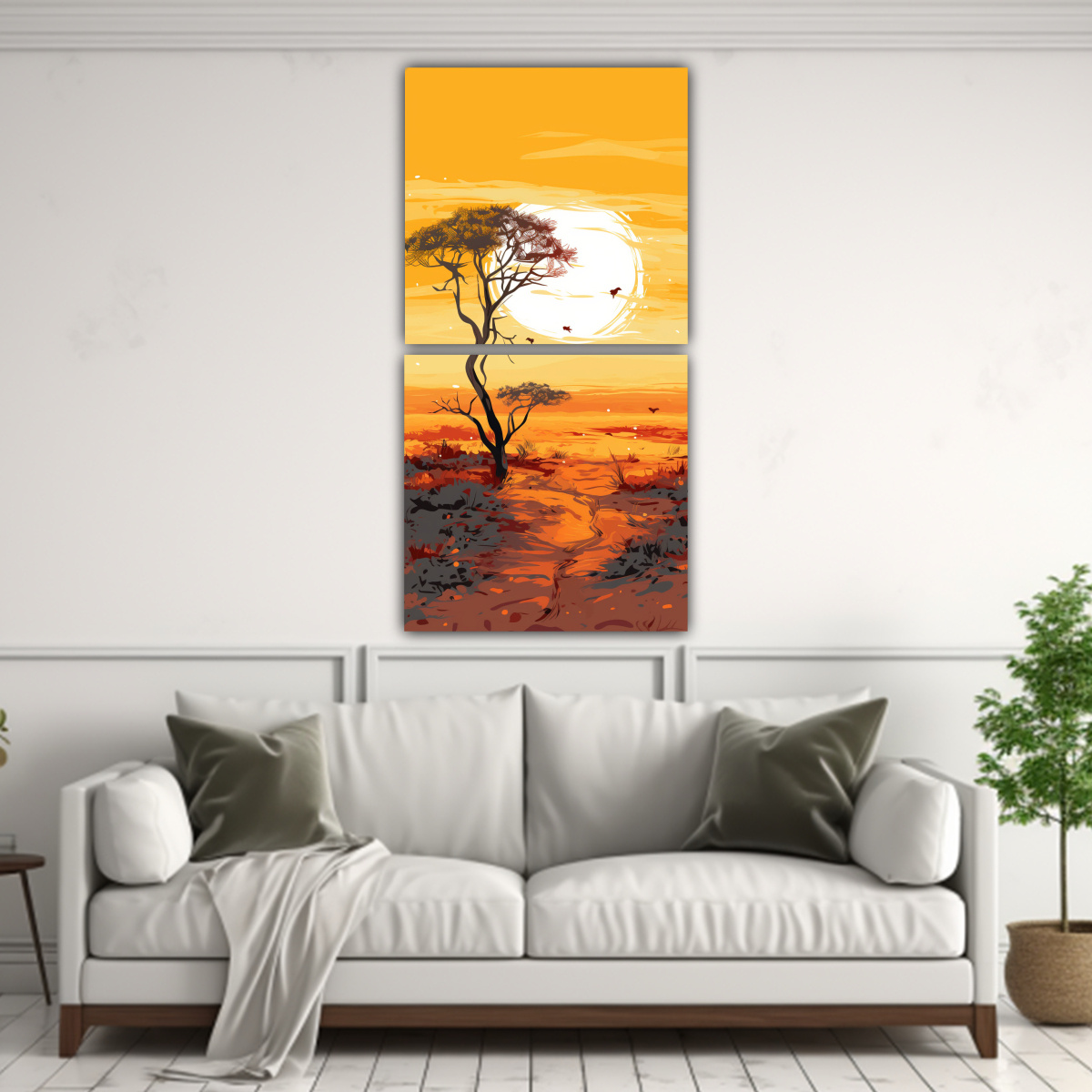 2 Artes Forma Belleza Natural Árbol De Sabana Y Desierto En Colores Amarillo Y Naranja Neo