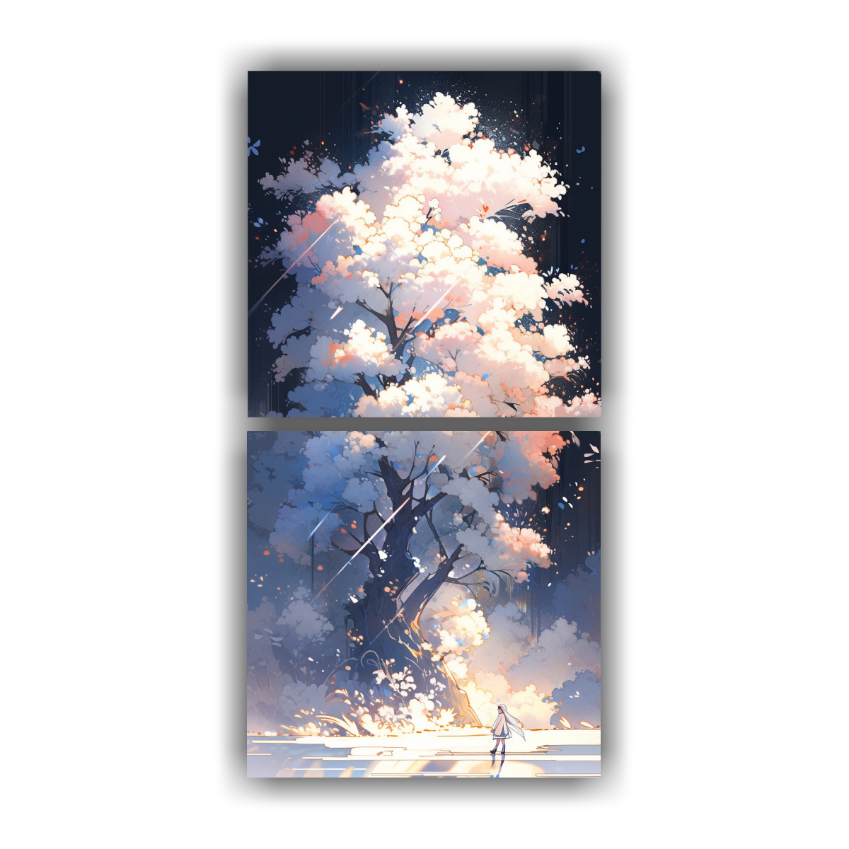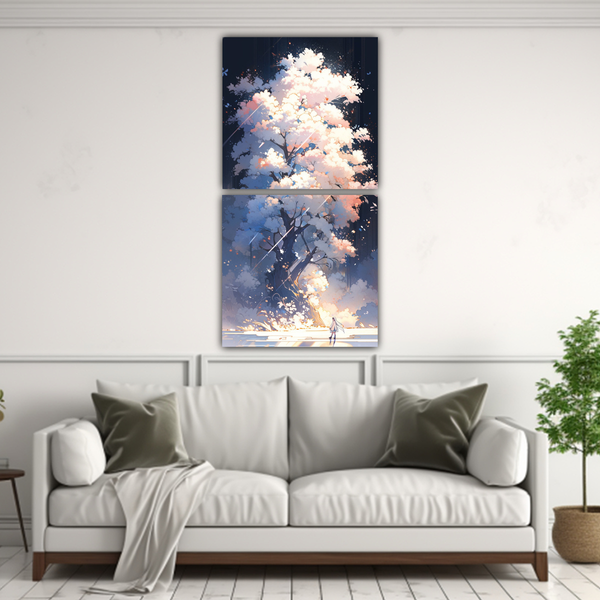 2 Lienzos De Tela Cuadro Figuras Árbol De Aliso En Colores Blancos Atmosfera Neonoir