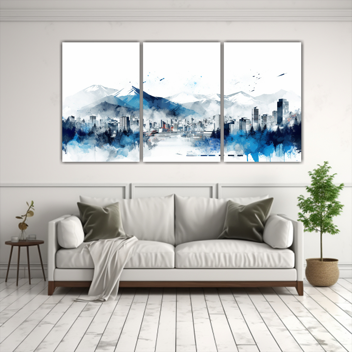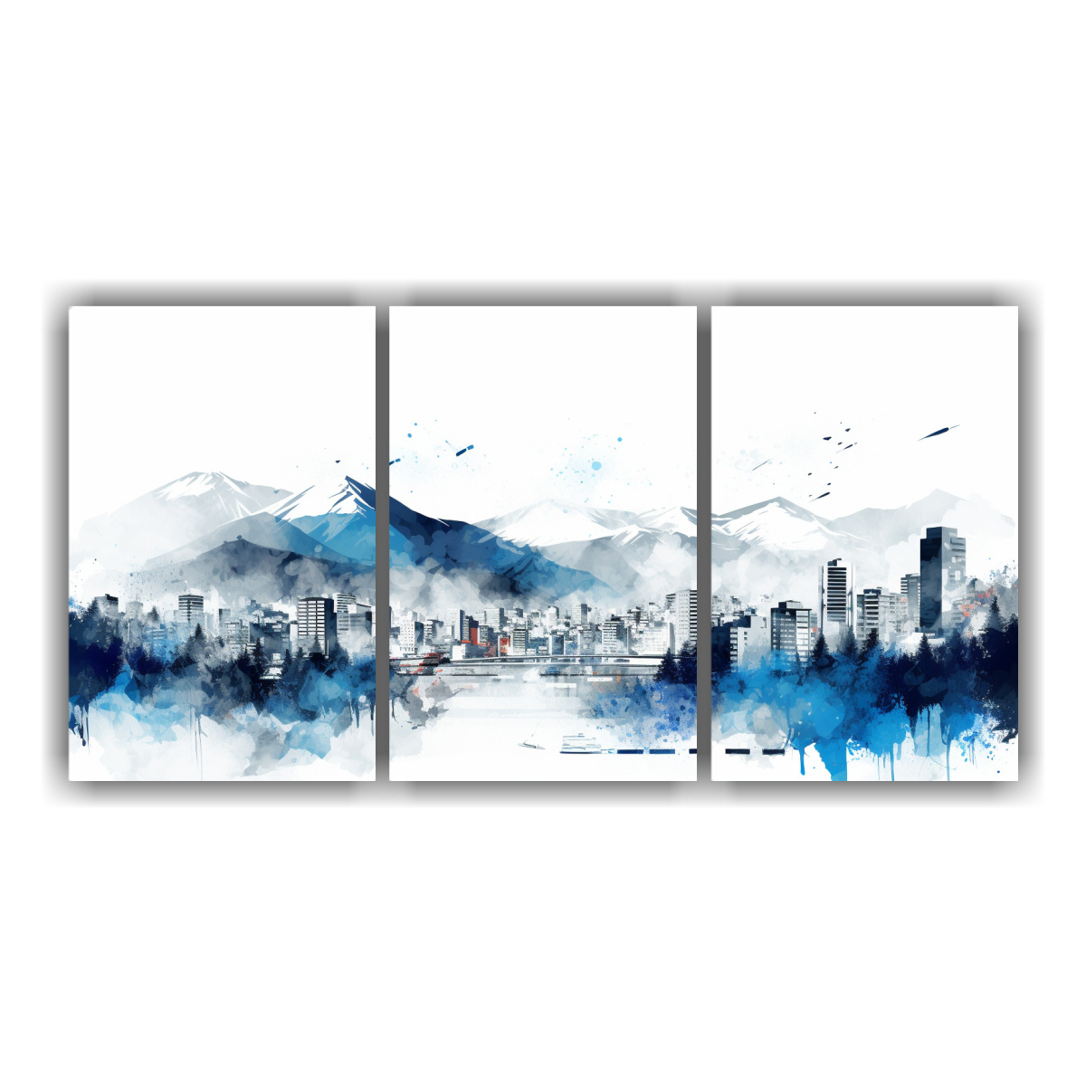 3 Lienzos Tela Baño Santiago Chile Blanco Azul Estilo Neo.