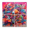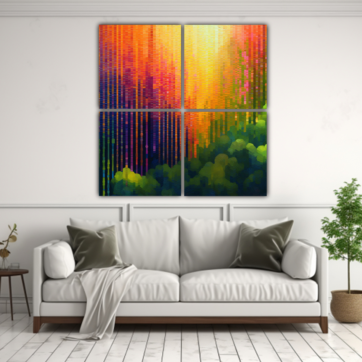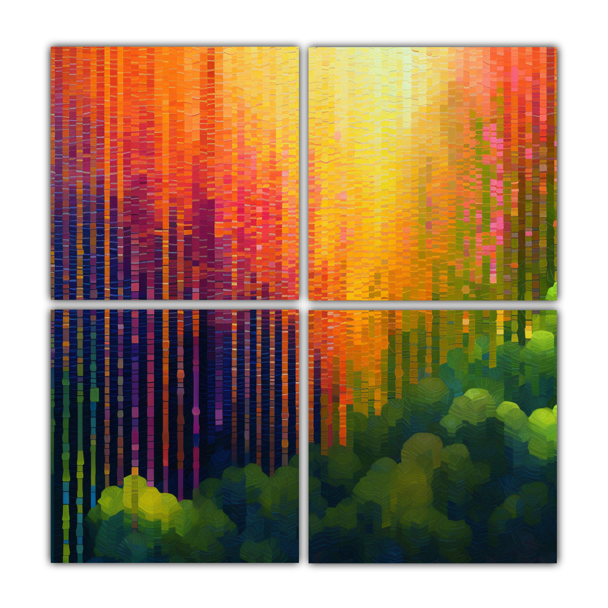 4 Cuadros De Lienzo Tonos Colores Vibrantes Representación Abstracta De Un Exuberante Paisaje Boscoso.