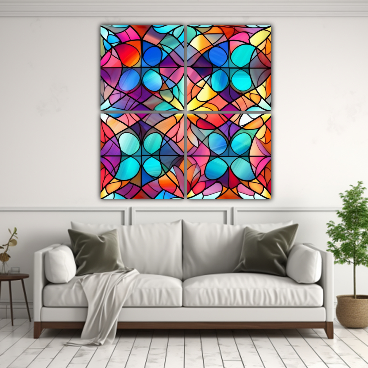 4 Lienzos Cuadro Vidrieras Vivas Para Decoración