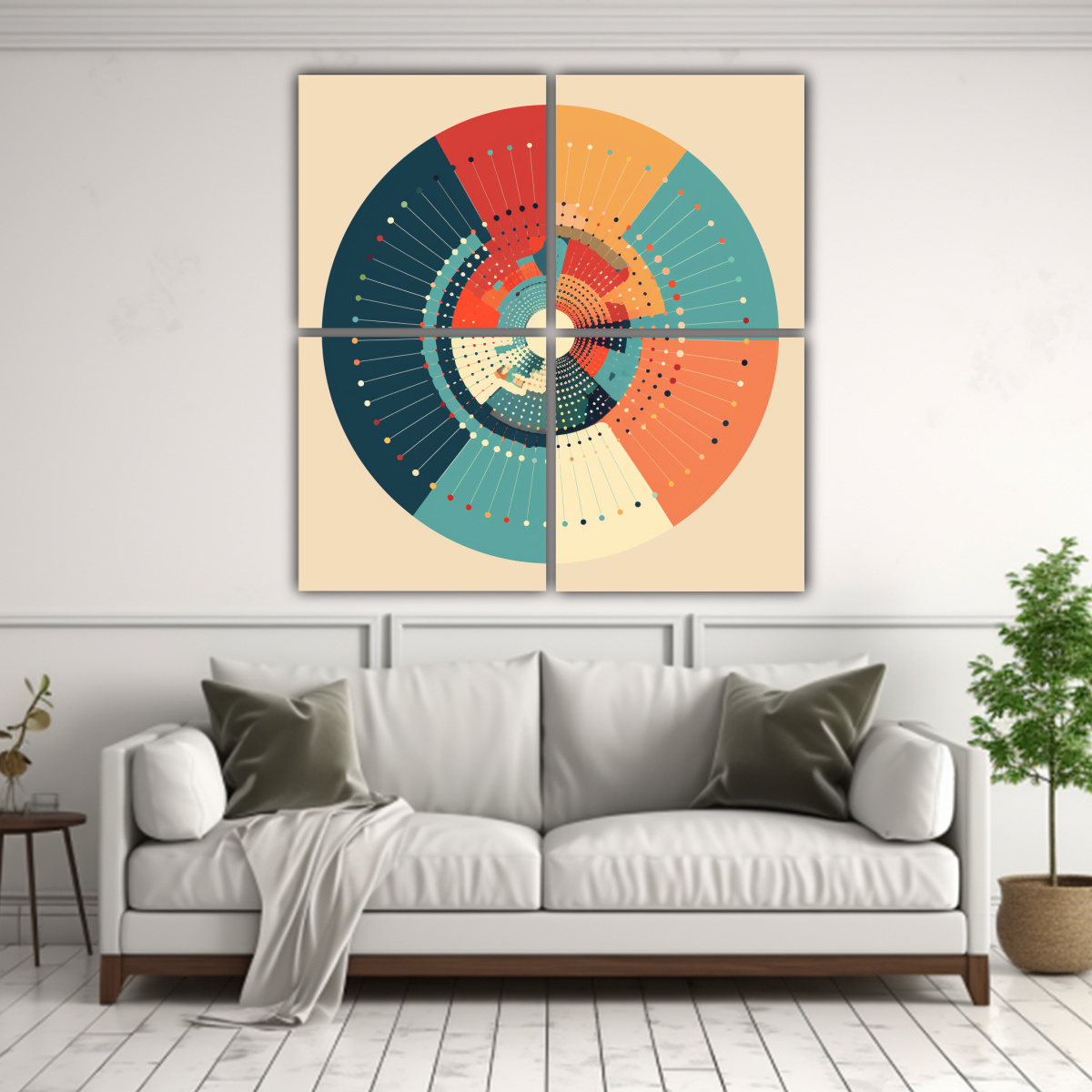 Decora tus espacios con el cuadro ‘4 Lienzos De Tela Decoración Tematica diseño gráfico círculo dentro de otro círculo conectados’ en tonos verde azulado, beige, carmesí, coral, turquesa, plateado y gris Compra con nosotros y obtén la mejor calidad al mejor precio del mercado