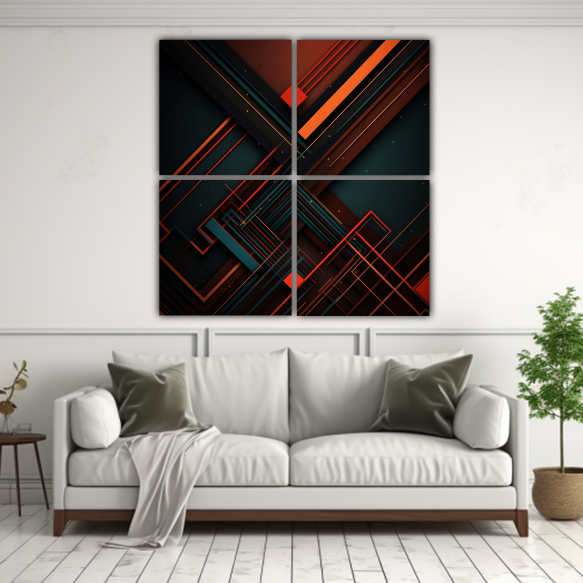 DecoCuadros tiene para ti 4 lienzos impresos en tela de alta calidad con diseños geométricos estilo retro en colores negro, chocolate, carmesí, coral y azul marino grisáceo Adquiere los mejores cuadros decorativos con entrega rápida y gratuita en Santiago