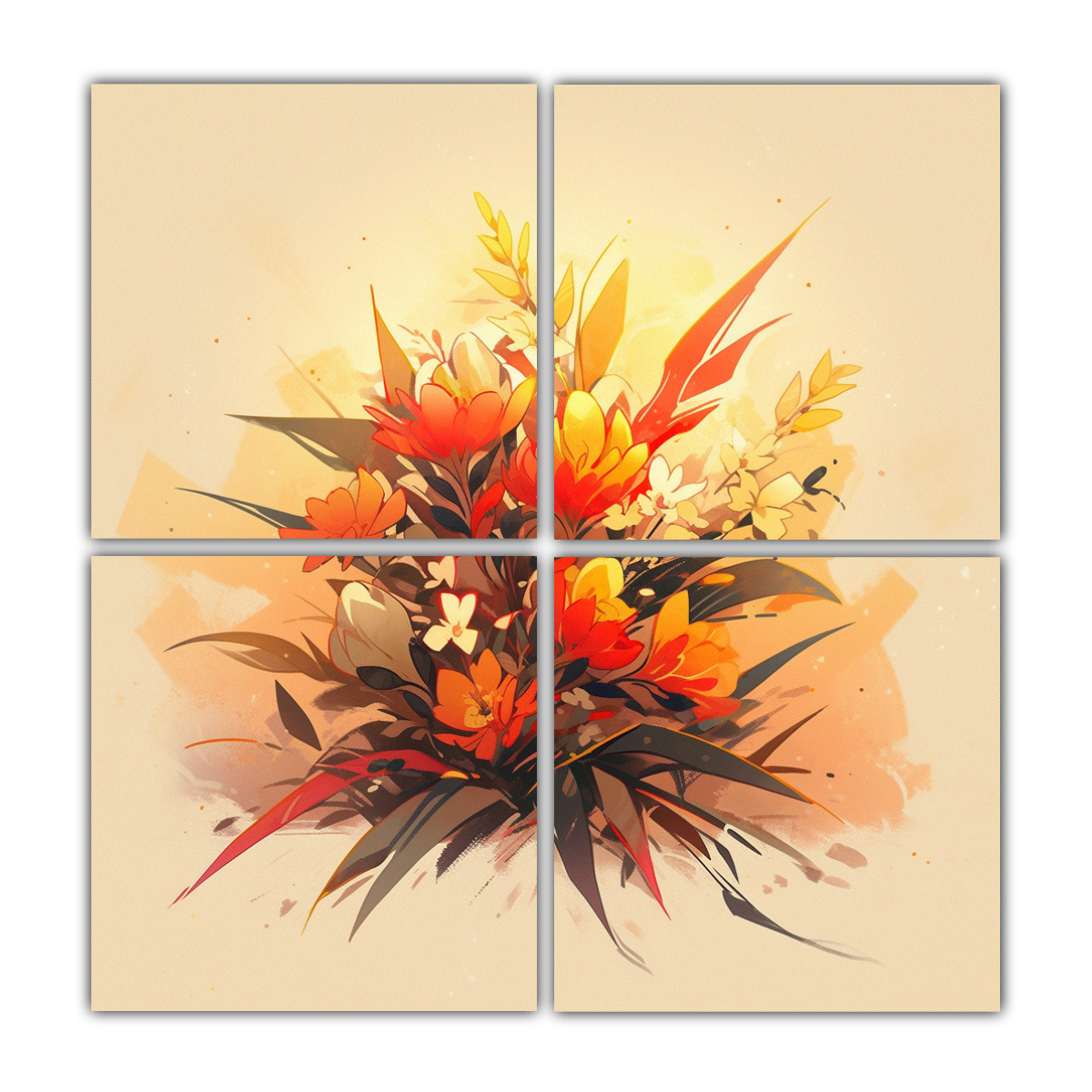 4 Lienzos Patron Intenso Mural Amarillo Y Rojo Colores Atmosfera Neonoir En El Estilo De Pinturas De Decoración