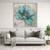 4 Telas En Bastidor Calidos Artesanal Con Turquesa Y Dorado