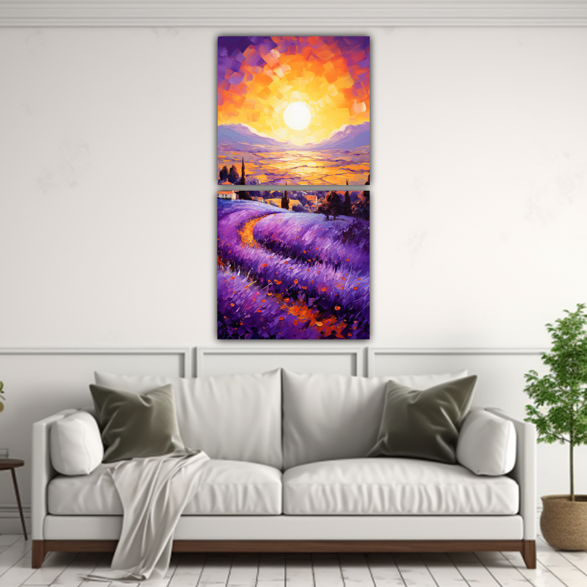Abrazo Cálido De Un Campo De Lavanda Provenzal: Set 2 Cuadros Decorativos Impactantes