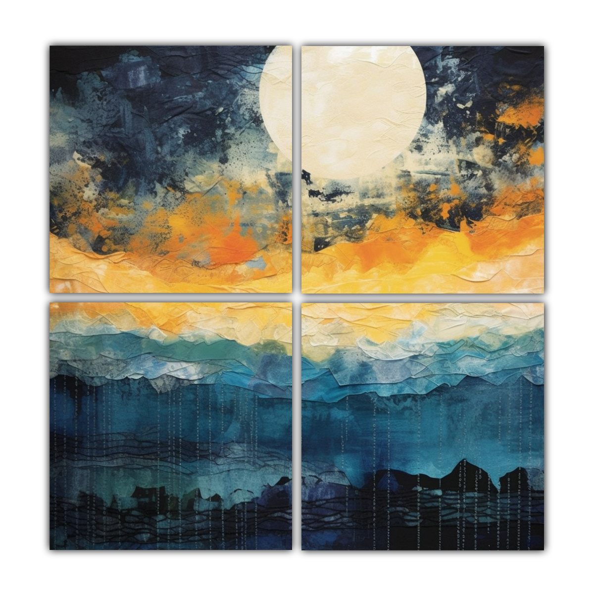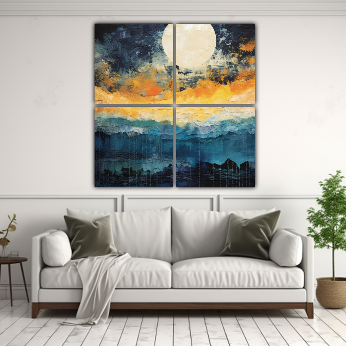 Este cuadro abstracto moderno de cuatro canvas es perfecto para colocar en el salón de tu hogar, ya sea sobre el sofá o en una pared vacía Su combinación de colores vibrantes y su diseño único agregarán un toque de estilo y sofisticación a tu espacio Combínalo con cojines y cortinas en tonos neutros para crear un contraste llamativo y moderno