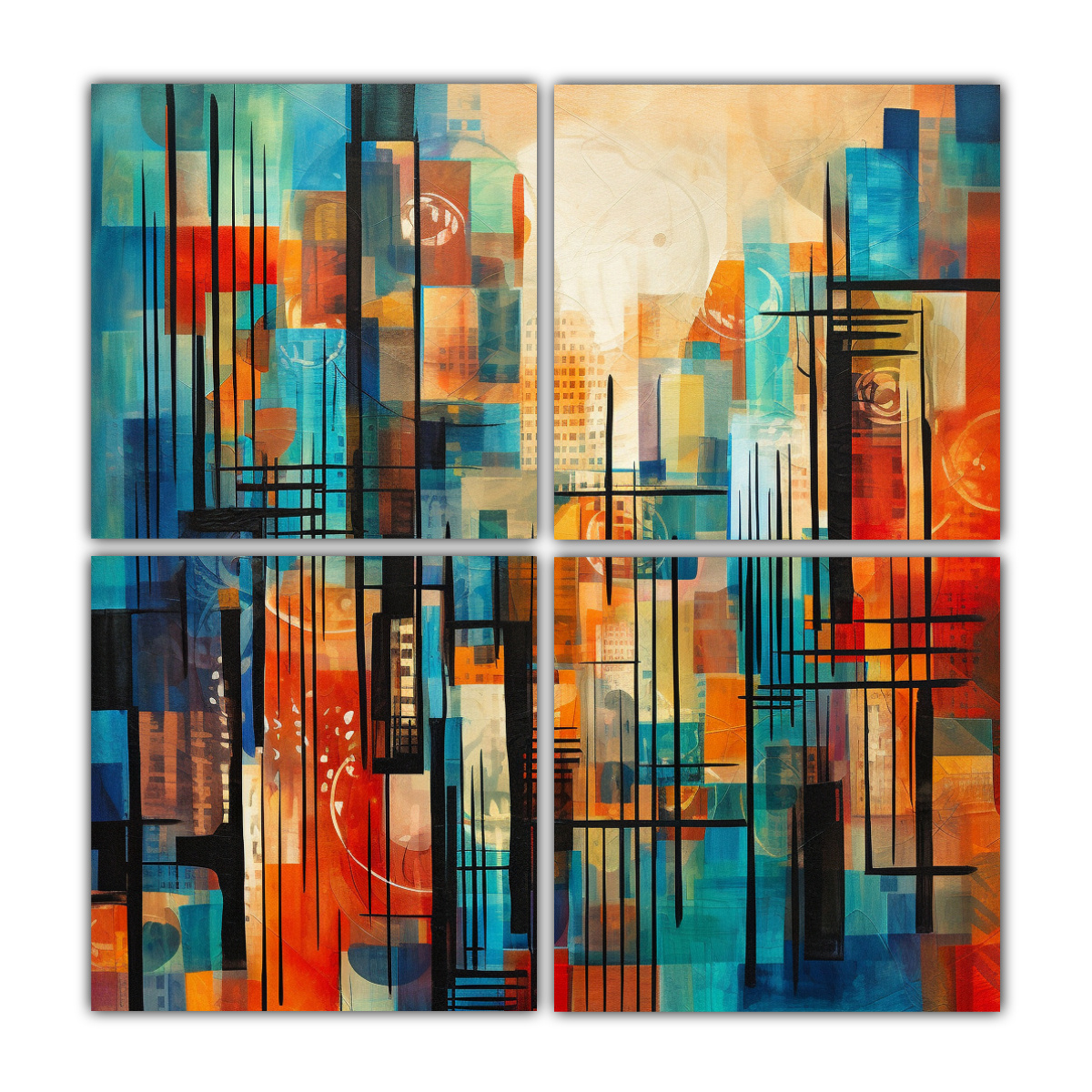 Abstracto Lienzo Vanguardia Con Líneas Y Colores Vibrantes
