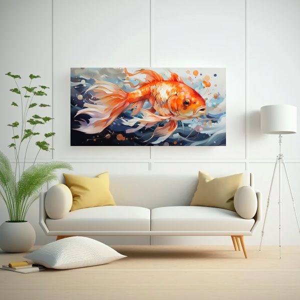 Acuarela Intensa Y Surrealista De Pez Dorado En Composición Colorida