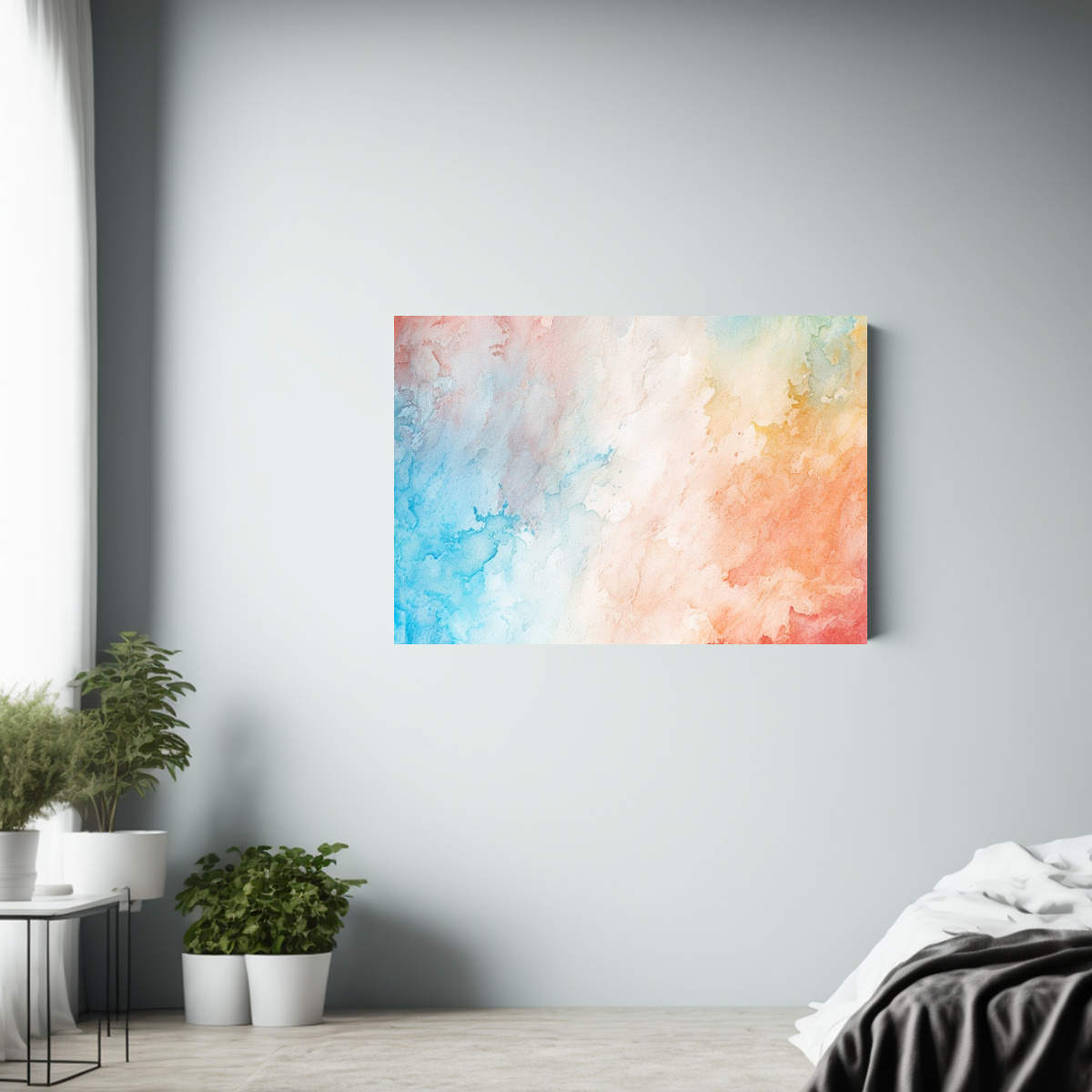 Este cuadro de Acuarela Moderna con textura de papel blanco brillante luciría perfecto en el dormitorio, sobre el cabecero de la cama Combina con muebles en tonos neutros para crear un ambiente relajante y sofisticado