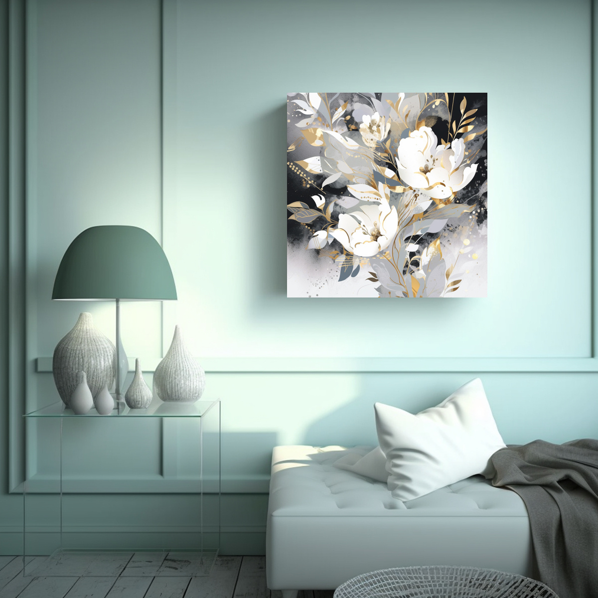En DecoCuadros ofrecemos cuadros decorativos impresos en tela de alta calidad con bastidores de madera Nuestro cuadro Adorno Arte Expresión: Atmosfera Neonoir en Blanco y Oro es ideal para dar un toque de elegancia a tu espacio Sus colores beige, azul marino grisáceo, gris y plateado crean una atmósfera neonoir que combina a la perfección con cualquier estilo de decoración Con diseños exclusivos, la mejor calidad del mercado y los precios más económicos, somos la opción ideal para decorar tu hogar u oficina Además, ofrecemos entregas rápidas y gratuitas en Santiago, y envíos express a regiones ¡No pierdas la oportunidad de tener un cuadro único y de alta calidad en tu espacio!
