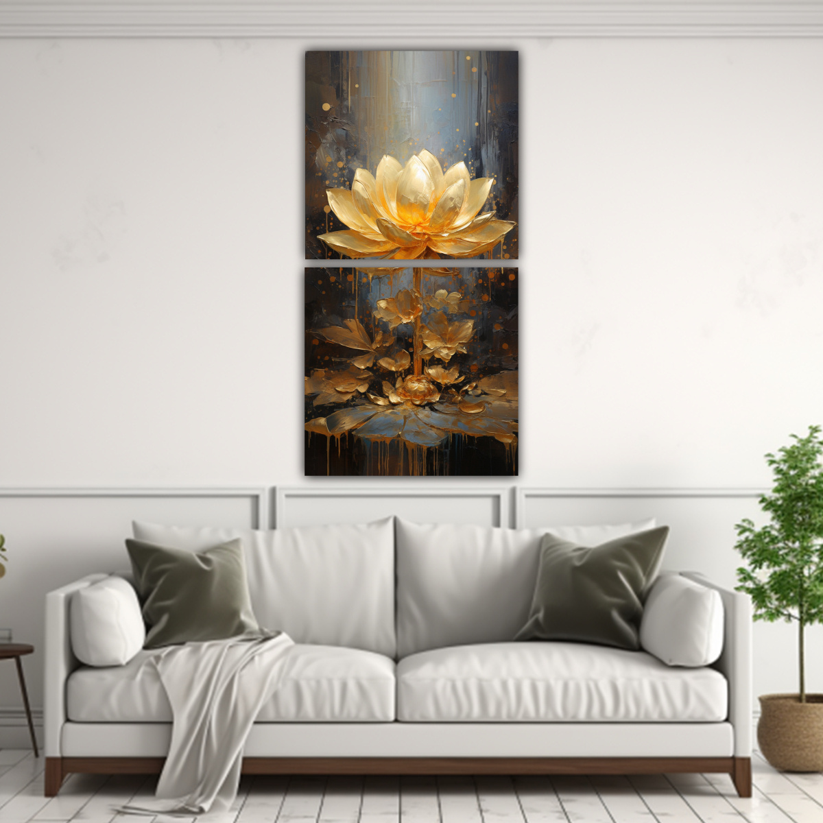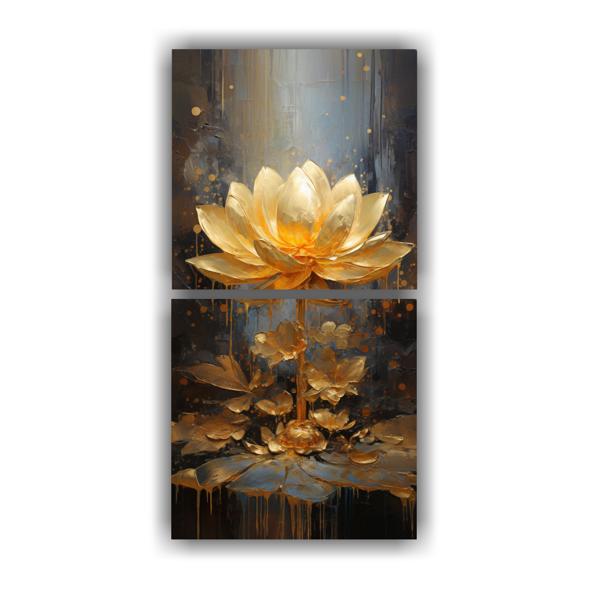 Armonía Cromática: Lienzo Inspirador De Loto Dorado Estilo G