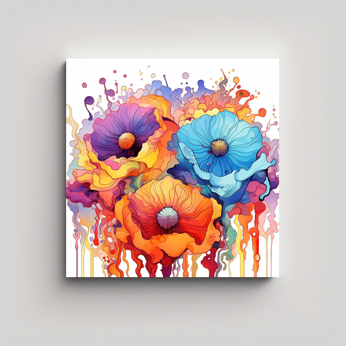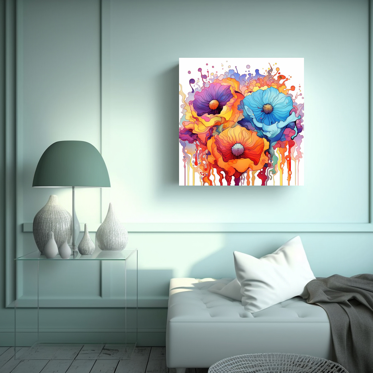 Armonía De Colores En Lienzo Abstracto De Flores Psicodélicas