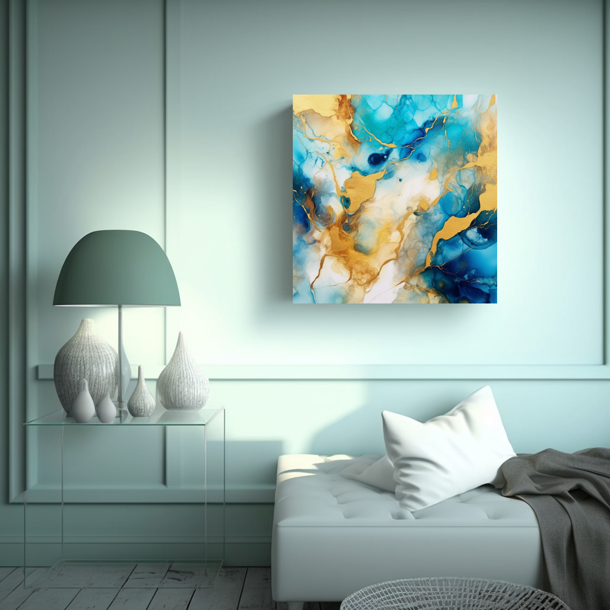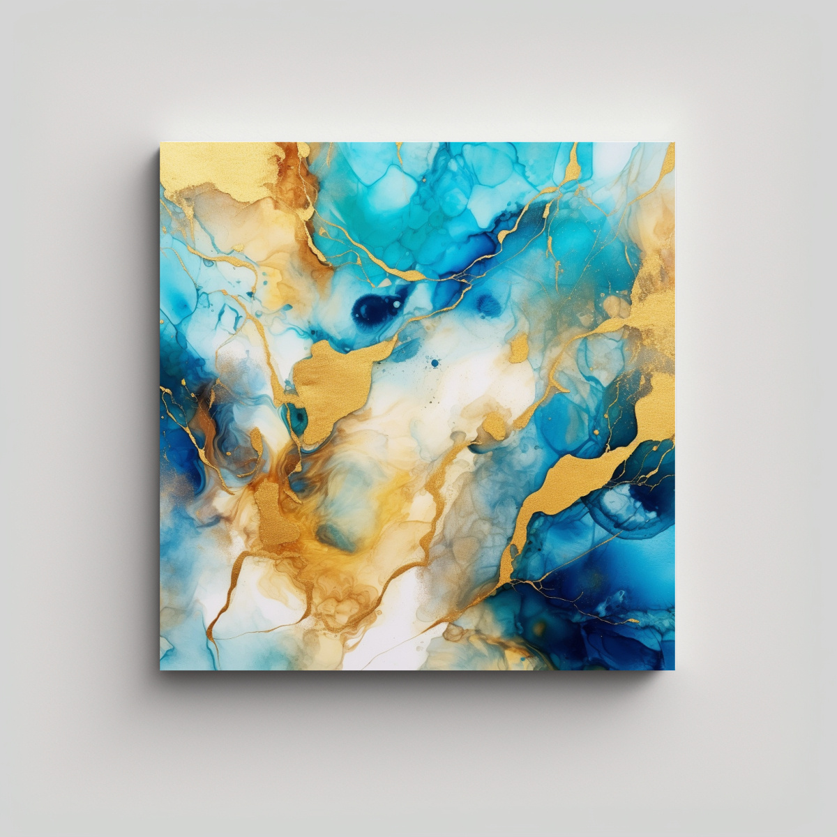 Decora tu espacio con nuestro cuadro decorativo de arte abstracto textura acuarela azul oro Con colores verde azulado, plateado, coral, gris, azul marino grisaceo, chocolate y turquesa, este cuadro le dará un toque inspirador y fantástico a tu ambiente Nuestros cuadros son impresos en tela de alta calidad con bastidores de madera, garantizando la mejor calidad del mercado a precios económicos Además, ofrecemos entregas rápidas y gratuitas en Santiago y envíos express a regiones Aprovecha nuestros diseños exclusivos y compra ahora