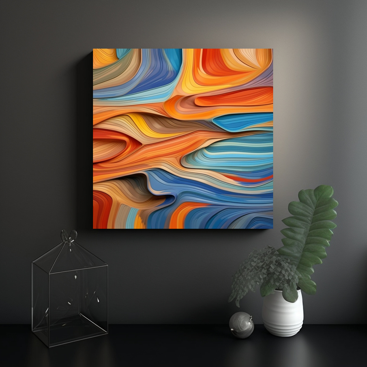 La tela en bastidor moderno e innovador captura la belleza fluida de la forma en una expresión artística única Añade un toque de elegancia y sofisticación a tu espacio con este cuadro