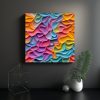 Este cuadro de arte abstracto moderno con sus tonos vibrantes de azul marino grisaceo, coral y turquesa, es ideal para colocar en la sala de estar sobre un sofá de color neutro para lograr un contraste atractivo Combínalo con cojines en tonos gris y plateado para un ambiente moderno y sofisticado