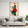 Este cuadro de arte abstracto estilo Bauhaus es perfecto para decorar tu sala de estar o estudio Puedes colocarlo sobre un mueble en tonos neutros, como beige o gris, para resaltar los colores vibrantes del cuadro También puedes combinarlo con cojines o alfombras en tonos similares para crear un ambiente armonioso y moderno