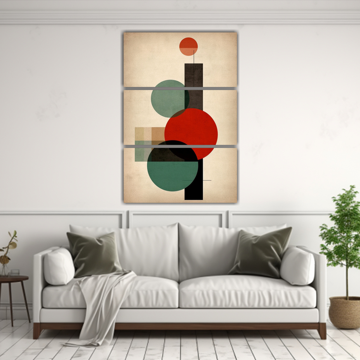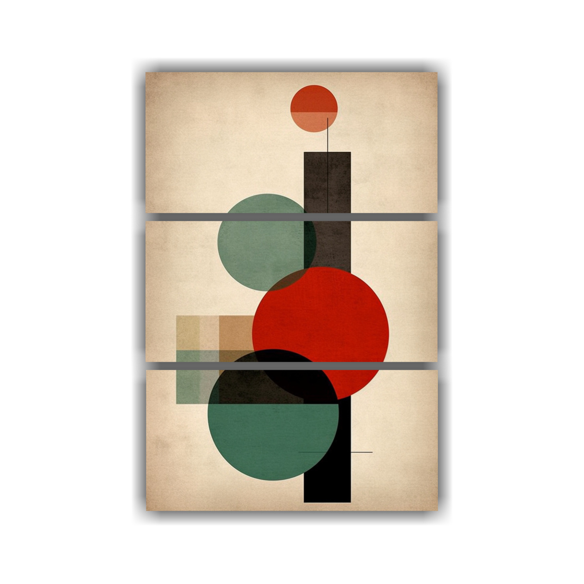 Arte Abstracto Tríptico Imagen Poder En Lienzo Estilo Bauhaus