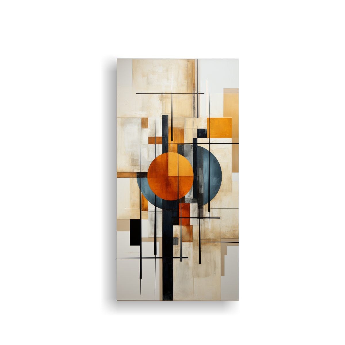 Este cuadro abstracto geométrico en colores neutros es perfecto para añadir un toque moderno a tu sala de estar Puedes colocarlo sobre un sofá de tonos neutros o una pared pintada en un tono suave para resaltar su elegancia También puedes combinarlo con otros cuadros de nuestra tienda para crear una galería de arte única en tu hogar