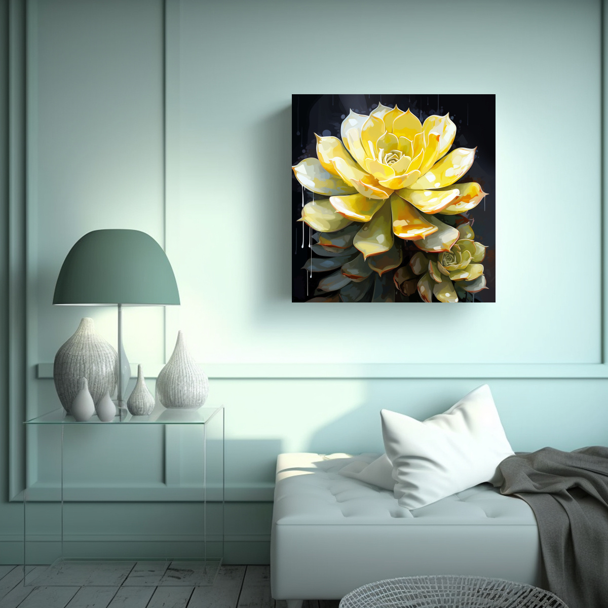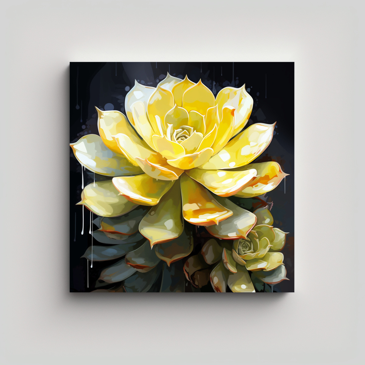 Este cuadro ‘Arte Alta Calidad Impresionante Plantas suculentas en colores Amarillo Y Blanco Neonoir at’ se vería espectacular en un salón de estar moderno Puedes colocarlo sobre un sofá blanco o una pared en tonos neutros para resaltar su belleza Combínalo con plantas suculentas reales para crear un ambiente fresco y natural ¡Asegúrate de que la iluminación sea adecuada para resaltar los colores vibrantes de este cuadro! Será el centro de atención de todas las miradas