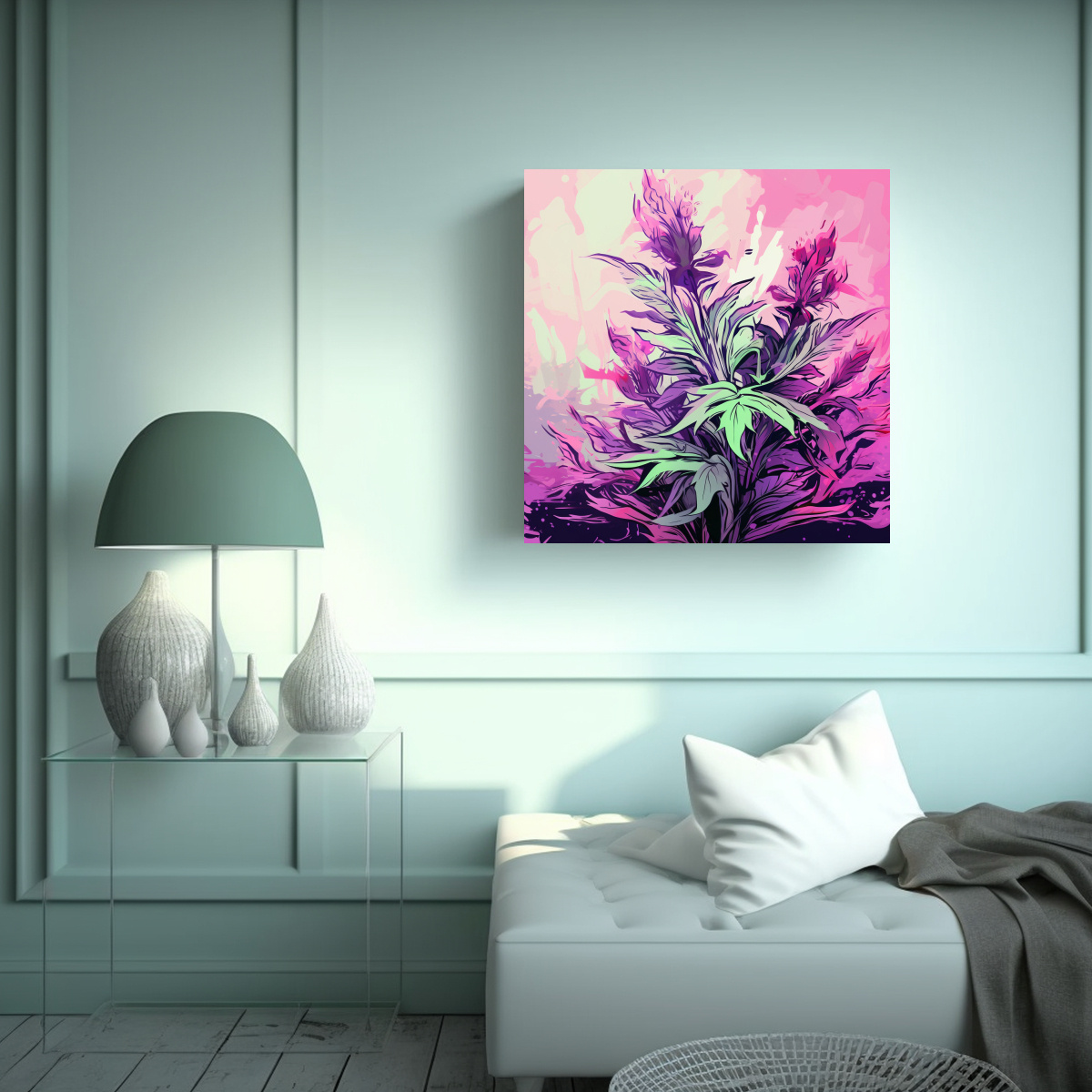 Dale un toque de elegancia y calidez a tus espacios con el cuadro Arte Calidoso Esta pintura decorativa combina tonos lavanda, verde y rosa con hierbas en colores neonoir, creando una atmósfera relajante y sofisticada Nuestros cuadros están impresos en tela de alta calidad y cuentan con bastidores de madera, asegurando durabilidad y resistencia Decora tu sala de estar, dormitorio o estudio con este diseño exclusivo de DecoCuadros y sorprende a tus invitados Además, ofrecemos los precios más económicos del mercado y envío gratis en Santiago ¡No pierdas la oportunidad de tener esta obra de arte en tu hogar!