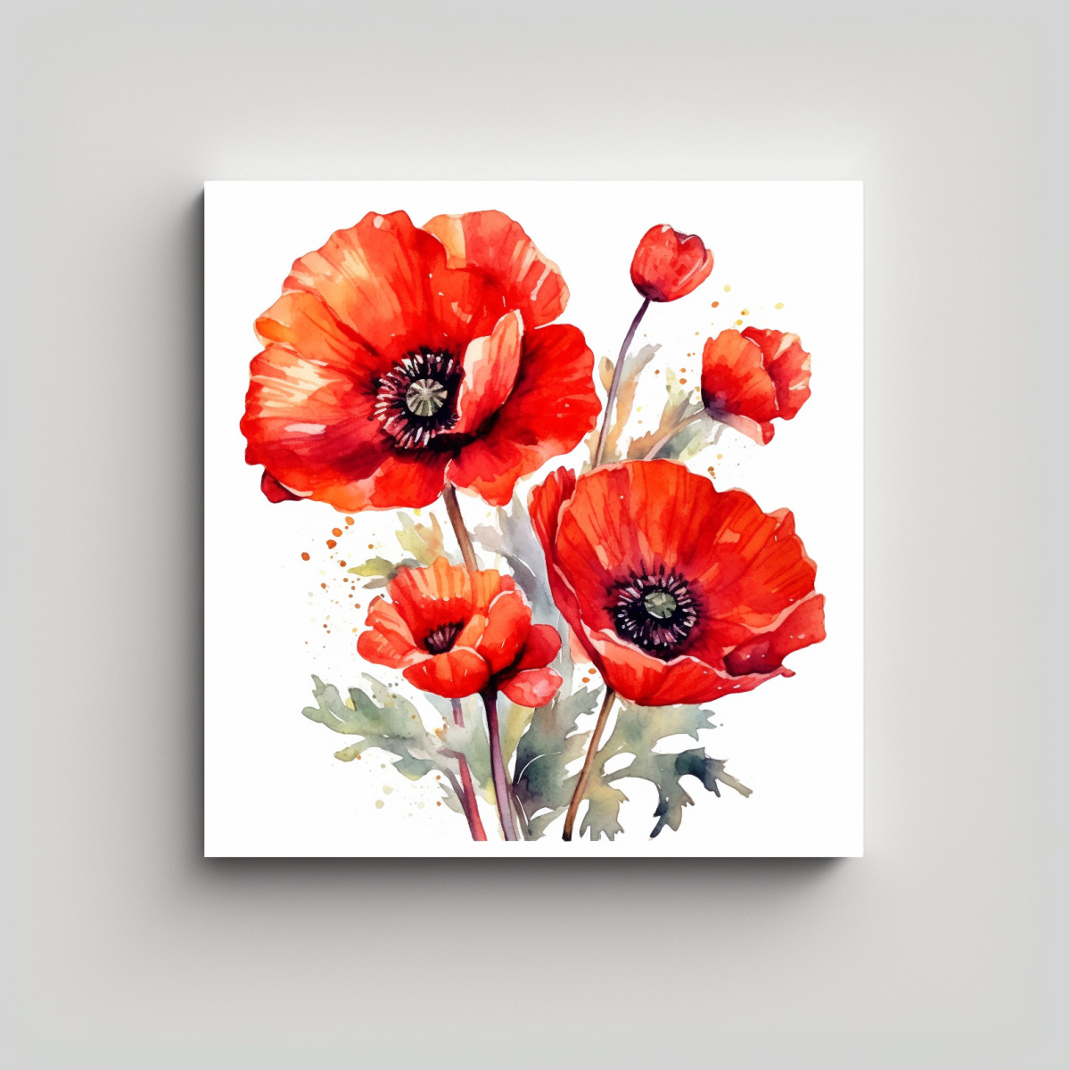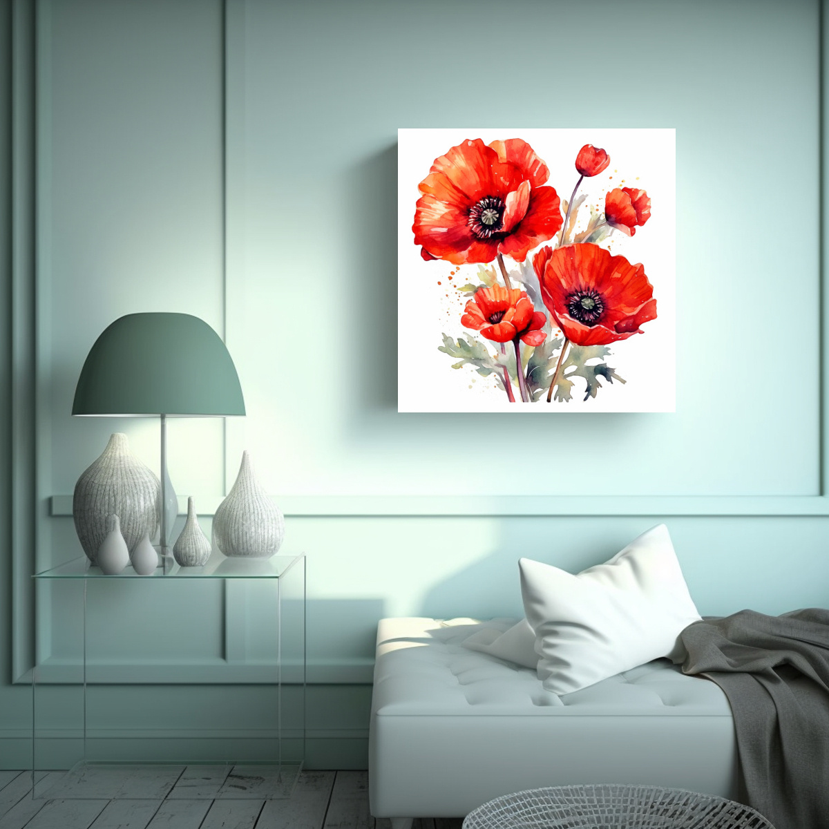 Arte Cuadrado Vibrante: Cuadros De Amapolas Rojas En Acuarela