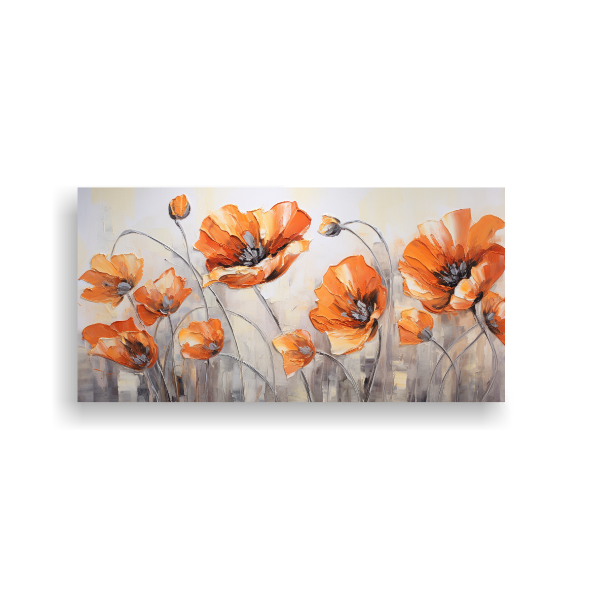 Este cuadro abstracto de amapolas naranjas es perfecto para decorar tu sala de estar o dormitorio Combínalo con muebles en tonos neutros, como grises o beige, para crear un ambiente moderno y sofisticado