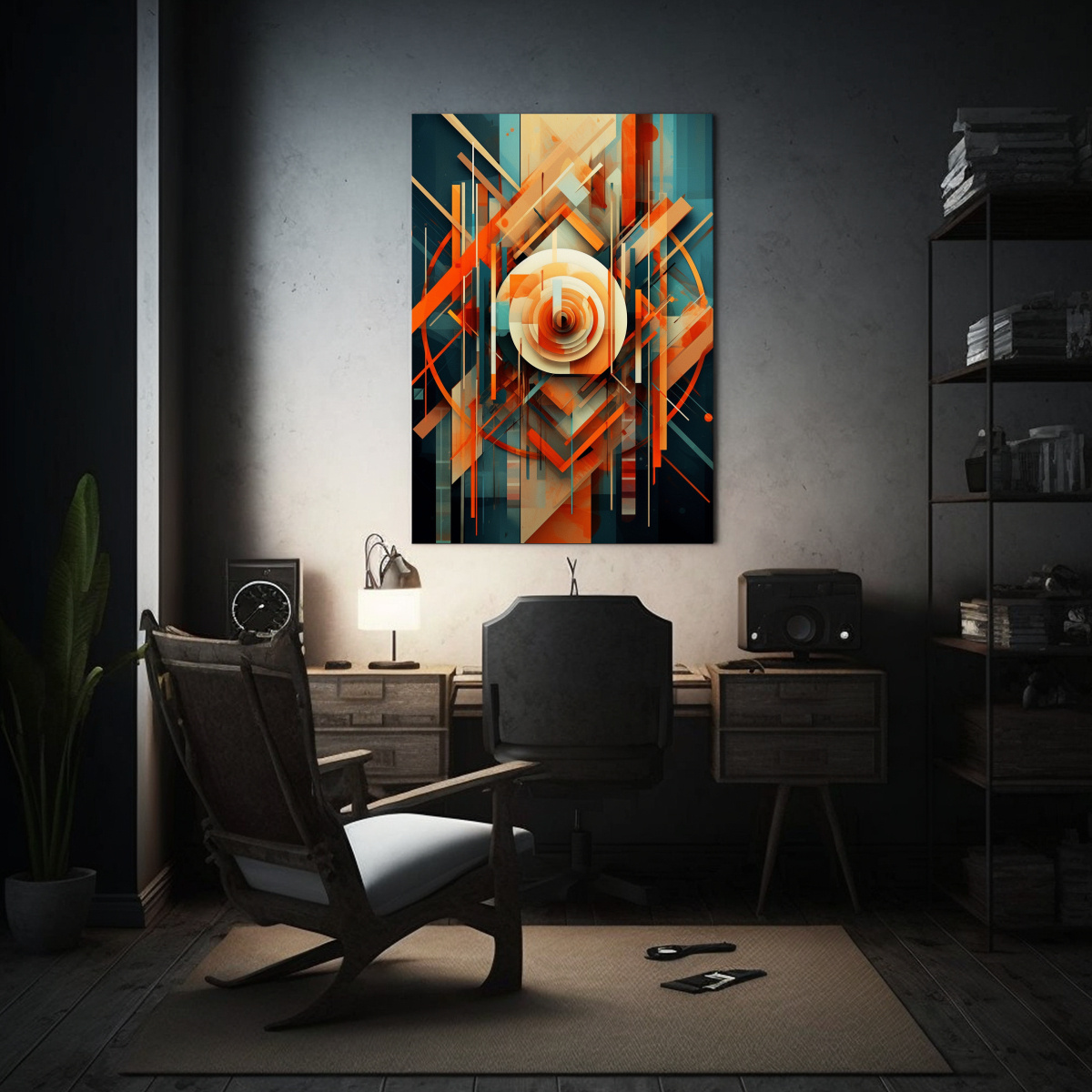 Este cuadro abstracto geométrico en alta resolución es perfecto para agregar un toque moderno y sofisticado a cualquier espacio Recomendamos colocarlo en el salón principal o en la sala de estar, combinándolo con muebles en tonos neutros como beige o gris para resaltar su diseño ¡En DecoCuadros tenemos la mejor calidad y precios más económicos del mercado!