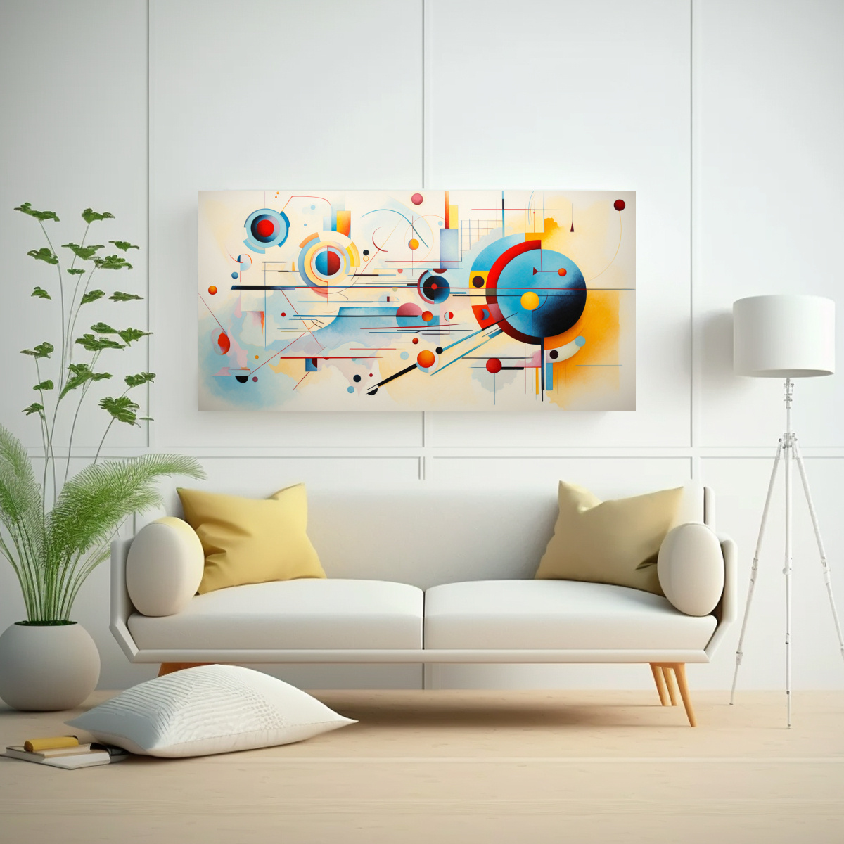 DecoCuadros te presenta el Arte de Pared Abstracto Hecho a Mano de Kandinsky, un cuadro decorativo que combina los colores Plateado, Menta, Carmesí, Mostaza, Turquesa, Negro, Beige y Lila Nuestros cuadros están impresos en tela de alta calidad con bastidores de madera, y son perfectos para darle un toque moderno y exclusivo a tu hogar o lugar de trabajo