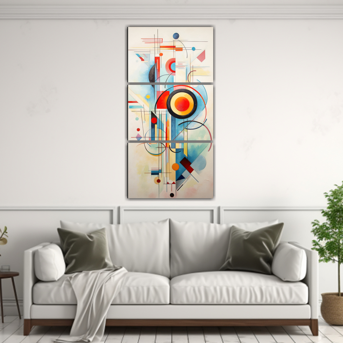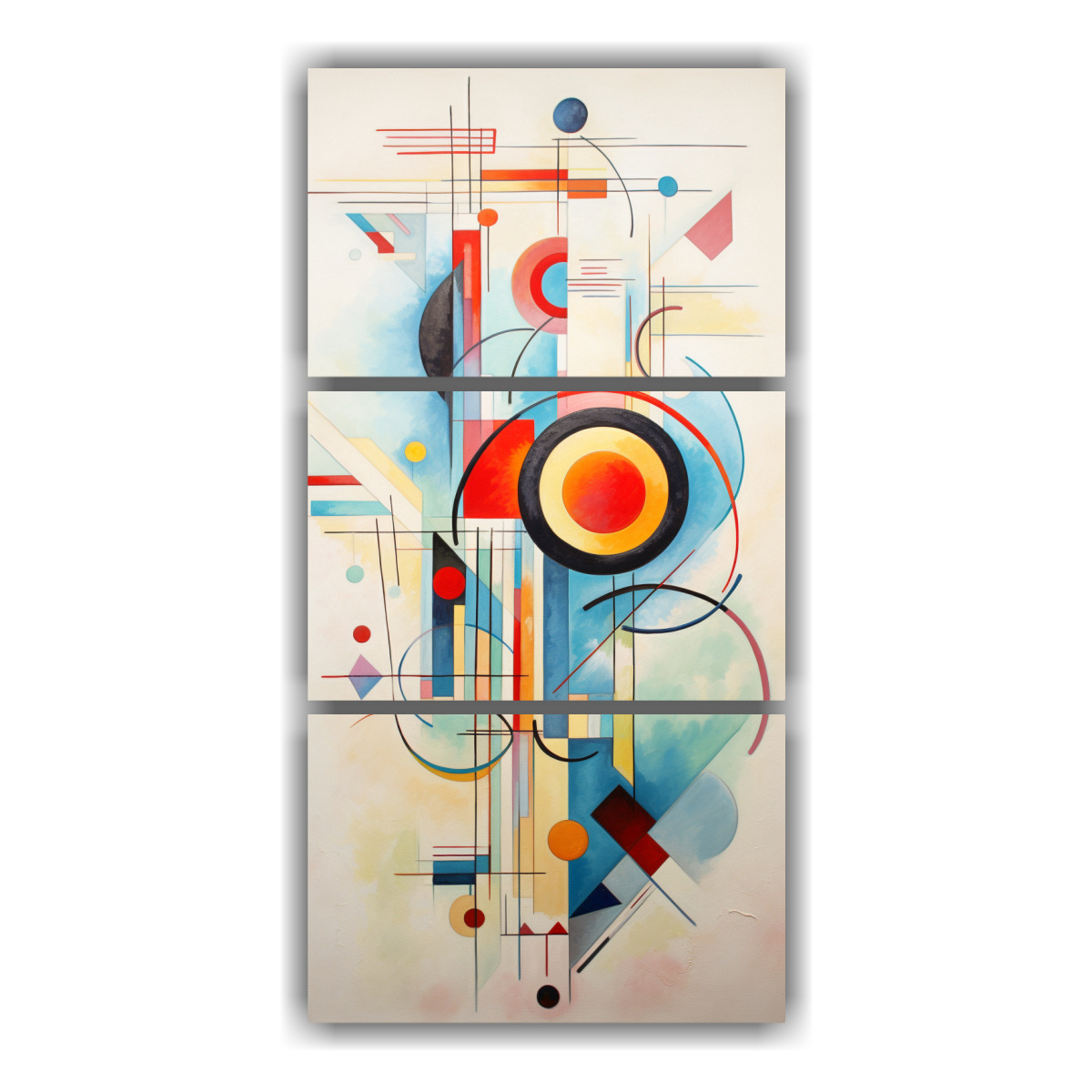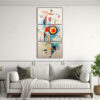 Este cuadro abstracto Kandinsky en colores Beige, Azul Marino grisaceo, Carmesí, Plateado, Turquesa, Coral y Lila es perfecto para decorar tu sala de estar o tu dormitorio Combina muy bien con muebles de tonos neutros como el blanco o el gris, y también se ve genial en ambientes minimalistas o contemporáneos Colócalo en una pared amplia y deja que sea el centro de atención de la habitación