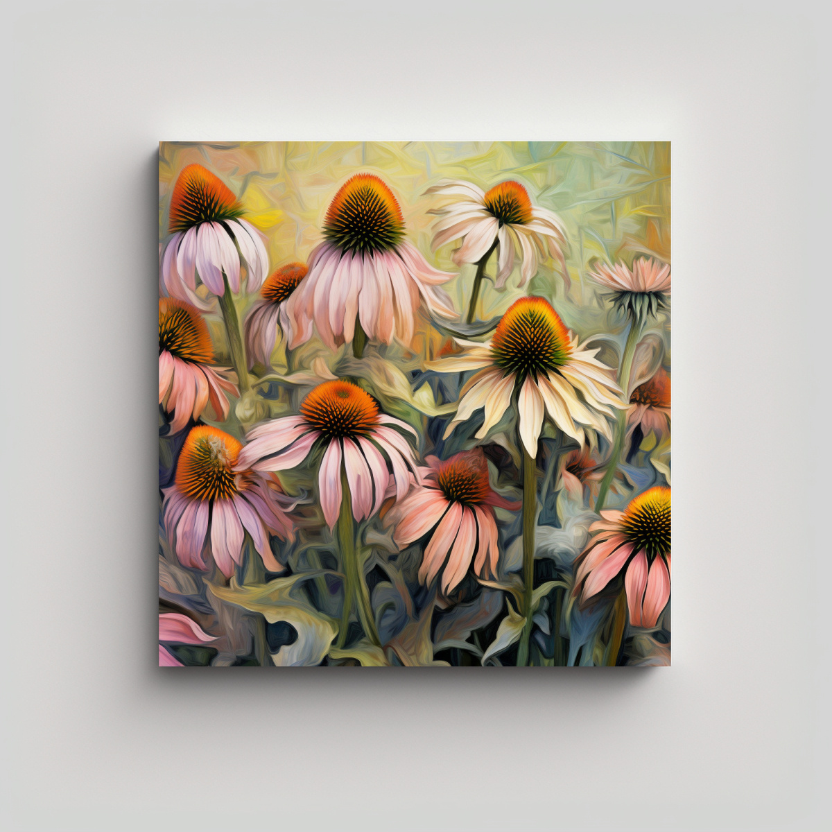 Arte De Pared Abstracto Para Comedor: Pintura De Hierbas De Equinácea Intensa