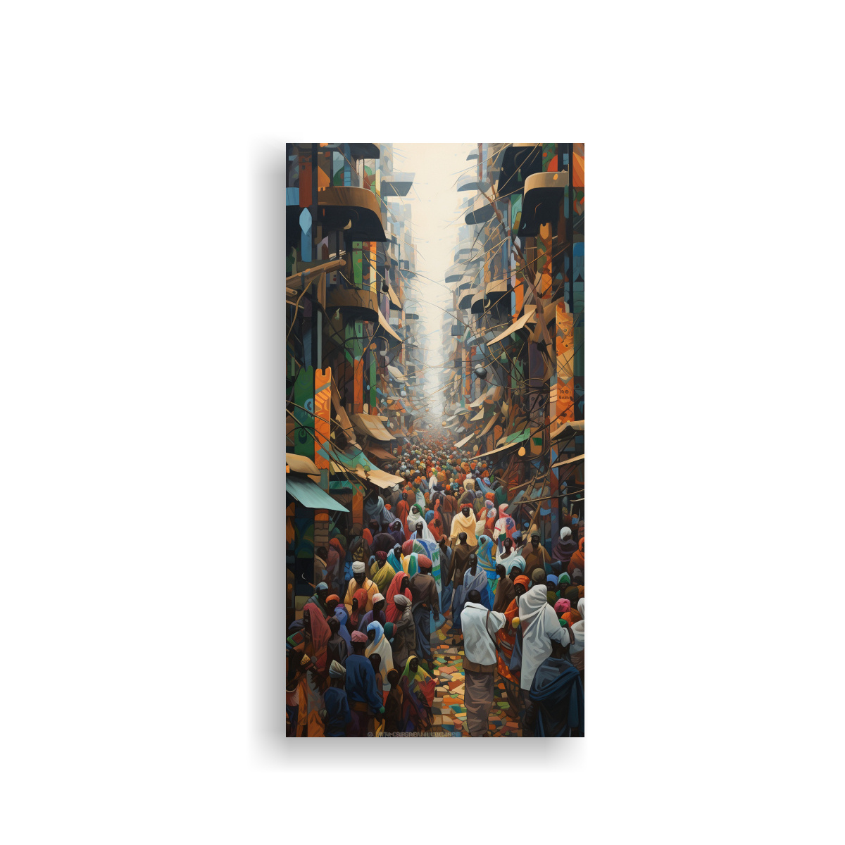 Arte De Pared Calidos Multicolor: El Ritmo Abstracto De Un Mercado Bullicioso Con Ven