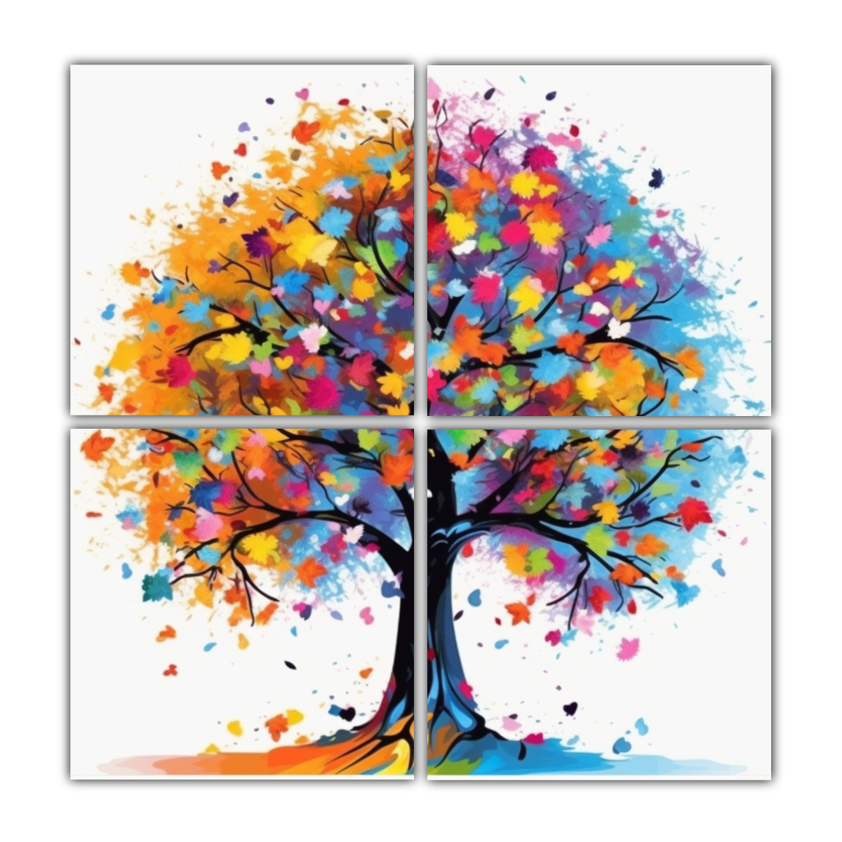 Este cuadro de Arte de Pared Colorido del Árbol sería ideal para decorar una sala de estar moderna Colócalo sobre un sofá en tonos neutros para resaltar su vibrante paleta de colores Combina con cojines y accesorios en tonos dorados y turquesas para crear una atmósfera sofisticada y llena de estilo