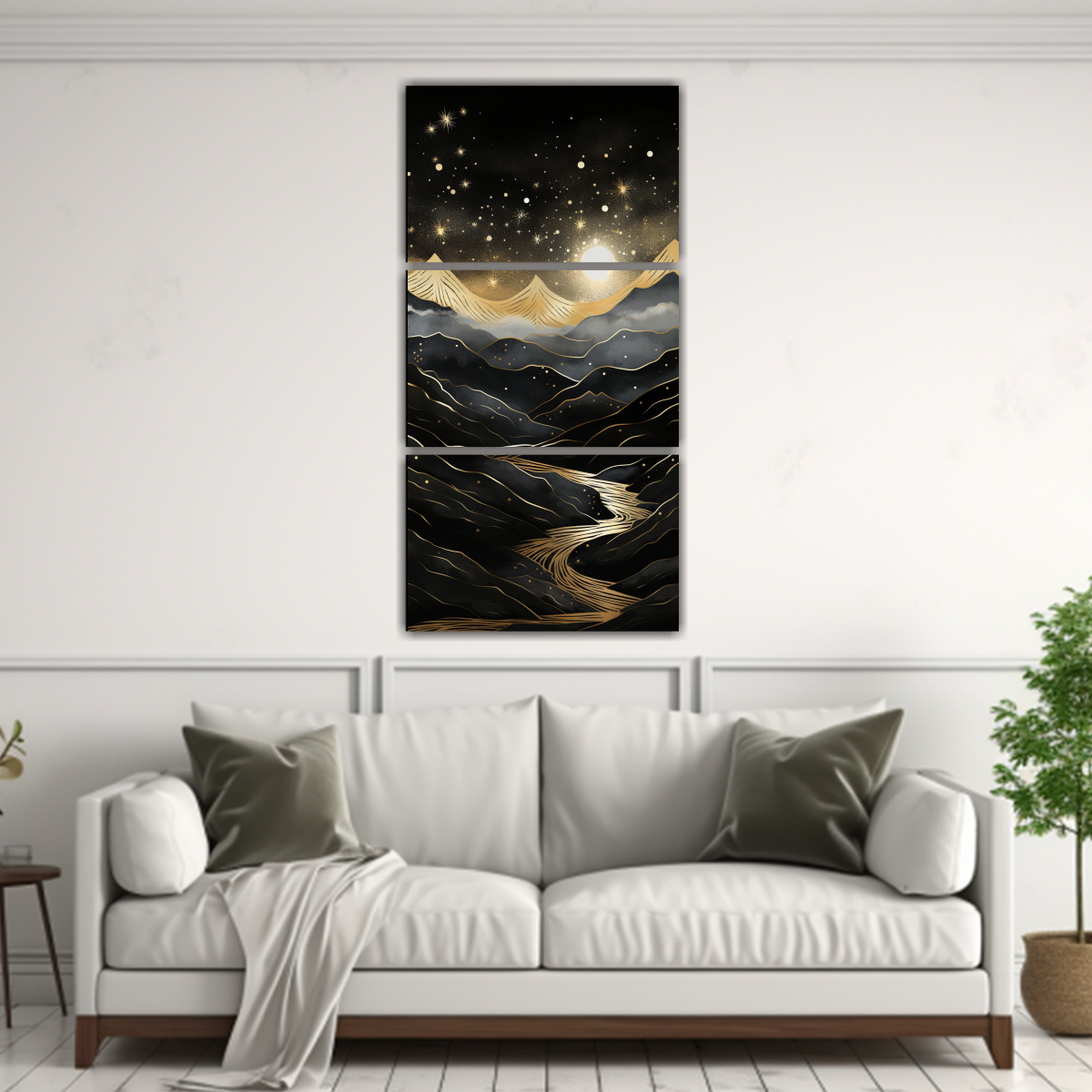 Coloca este cuadro en tu sala de estar sobre un sofá gris para crear un contraste elegante y moderno Combínalo con cojines en tonos plateados y azul marino para lograr un ambiente sofisticado y acogedor