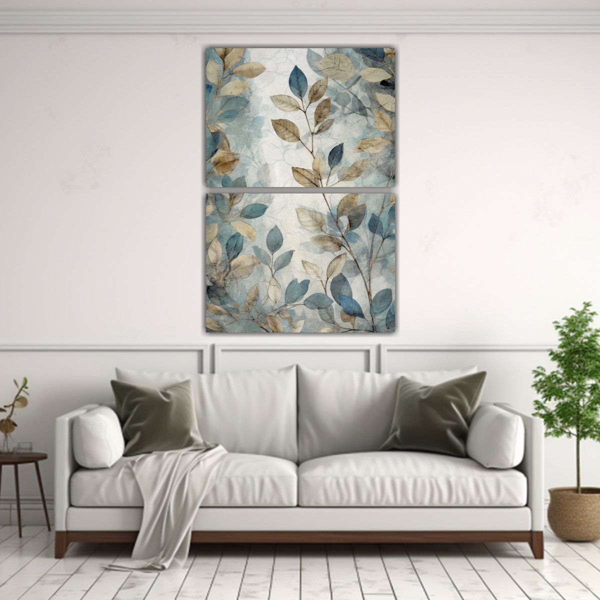 Este cuadro de hojas rústicas en gris, azul y blanco es perfecto para decorar tu sala de estar o dormitorio Colócalo sobre una pared de tonos neutros para resaltar su diseño y crear un ambiente cálido y acogedor Combina este cuadro con muebles de madera y accesorios en tonos tierra para lograr un estilo rústico y elegante