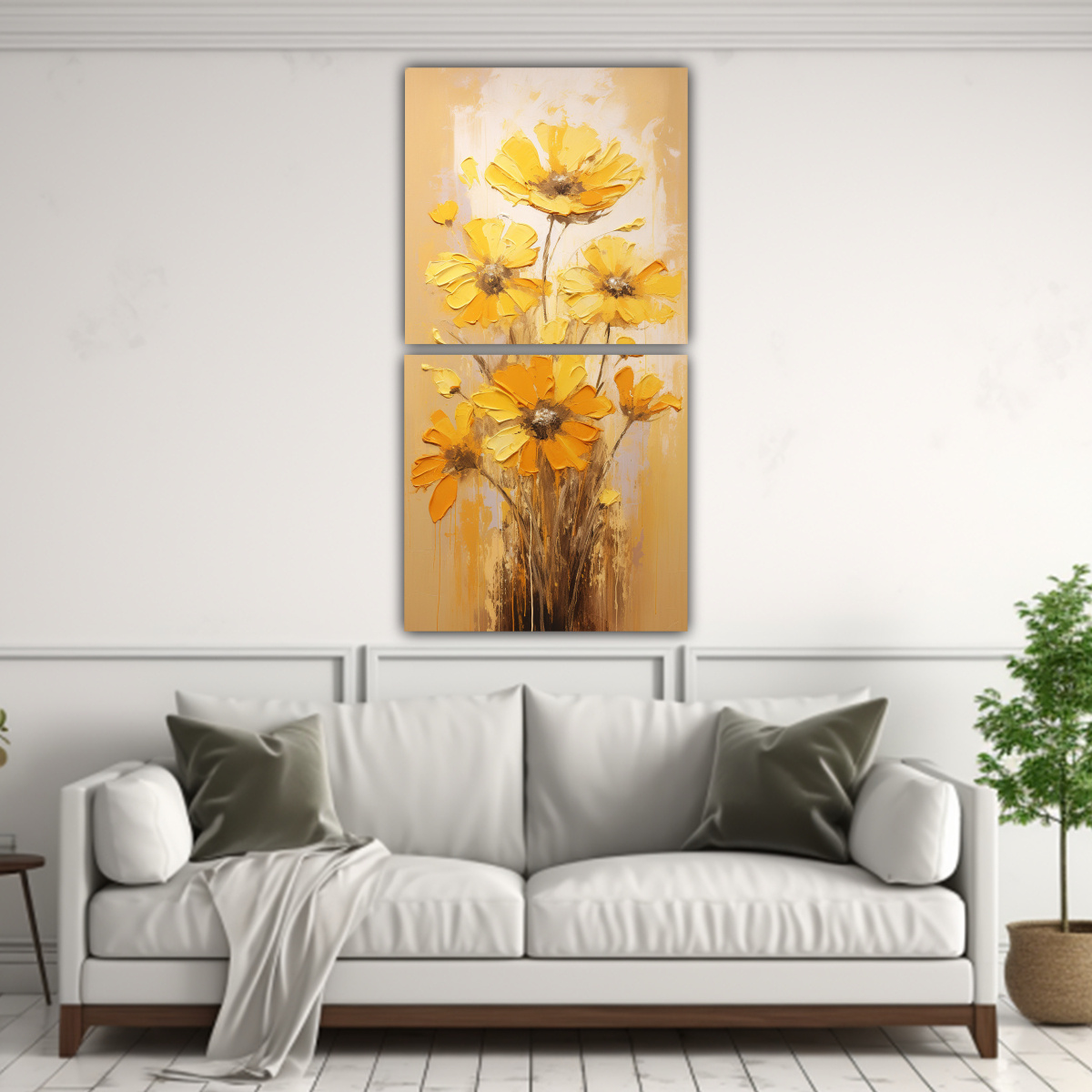 Arte De Pared Dibujo Esquema Amarillo Y Dorado Flores En Lienzo