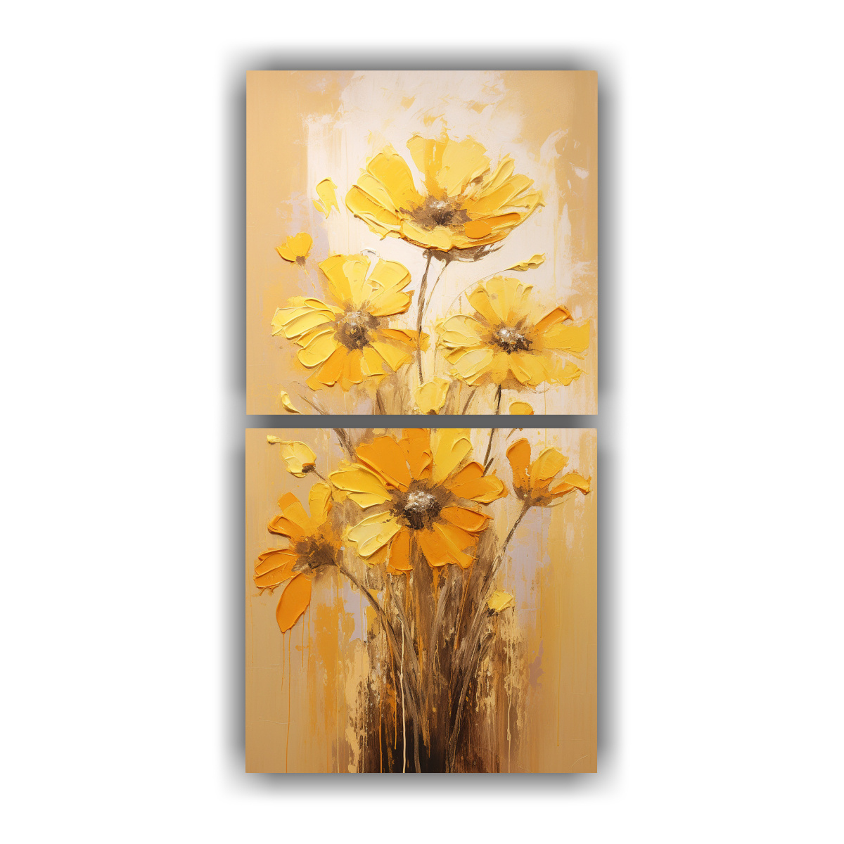 DecoCuadros te ofrece el cuadro Amarillo y Dorado Flores en Lienzo, una opción elegante y sofisticada para decorar tus paredes Con colores como coral, azul marino grisáceo, beige, chocolate, mostaza, gris, plateado, dorado y amarillo claro, este cuadro en lienzo de alta calidad dará vida a cualquier ambiente de tu hogar u oficina