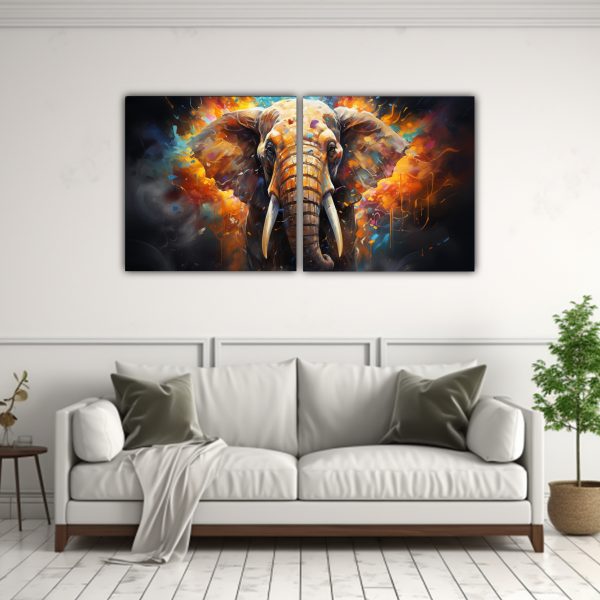 Arte De Pared Elefante Asiático Pintura Al Estilo óleo Estilo Colorido 21