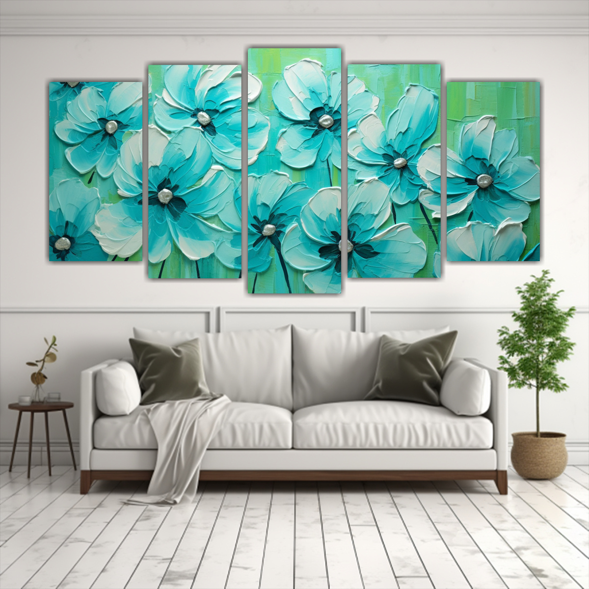 Coloca el cuadro de Arte de Pared Floral en Verde y Turquesa en tu sala de estar para crear un ambiente fresco y relajante Combínalo con cojines y cortinas en tonos turquesa y verde para lograr una armonía completa También puedes colocarlo en tu dormitorio para darle un toque elegante y sofisticado ¡Descubre las posibilidades de decoración con DecoCuadros!