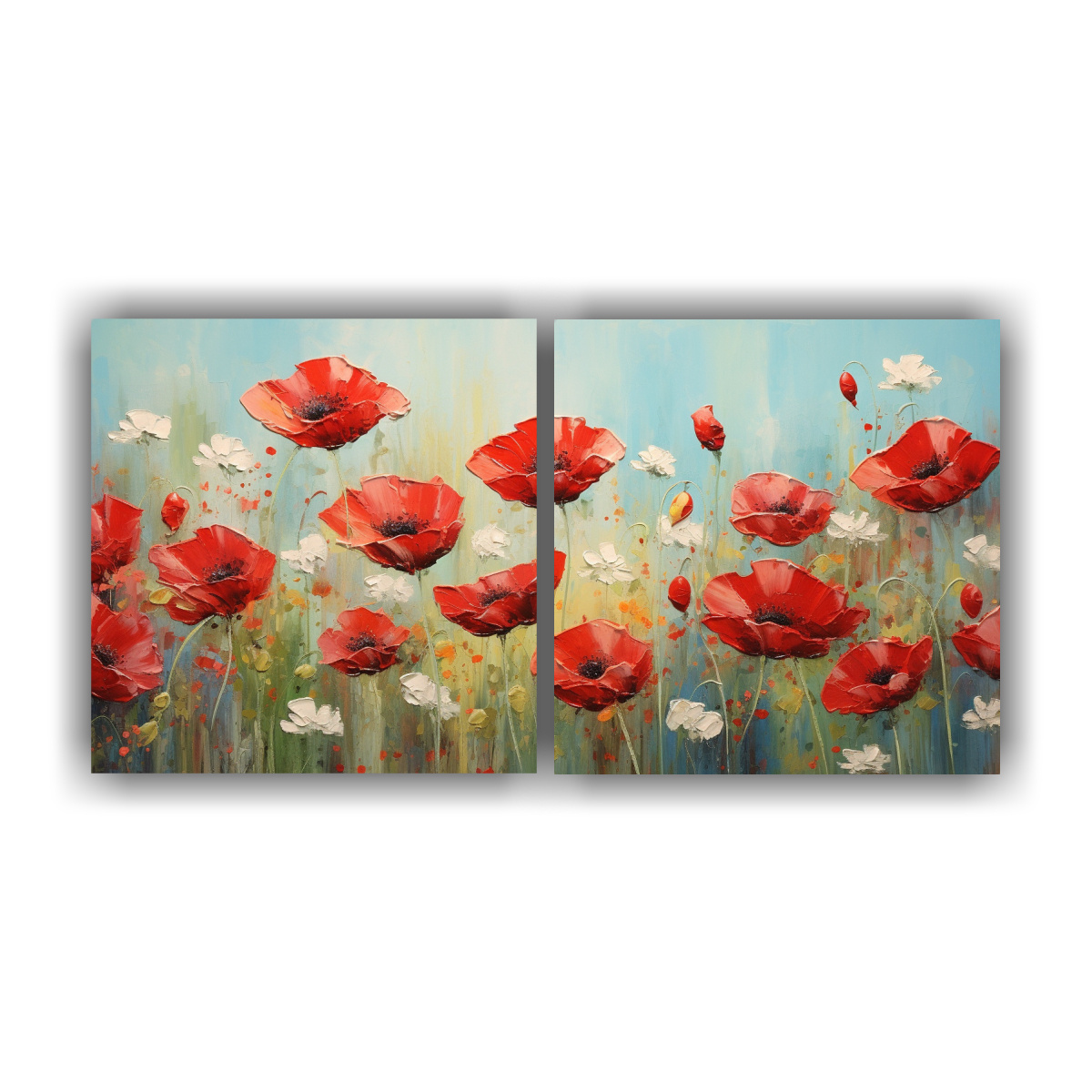 DecoCuadros te ofrece el Arte de Pared Fotografía de Colores Vibrantes Amapolas en Lienzo, con colores plateado, azul marino grisáceo, dorado, carmesí, gris y rosado claro Elige la mejor calidad y diseño exclusivo al mejor precio