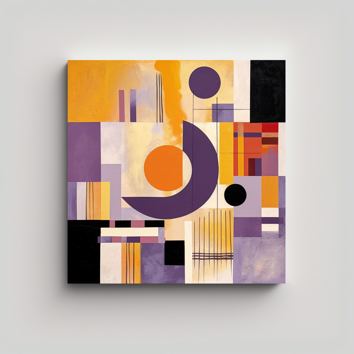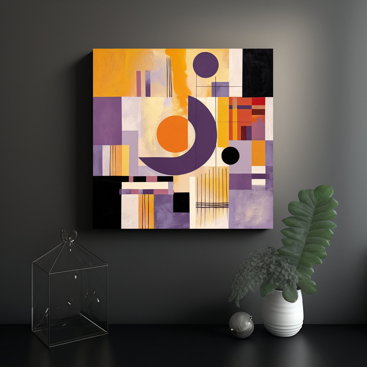 Para resaltar la elegancia de tu comedor, coloca este cuadro en una pared blanca para que los colores vibrantes como el púrpura, amarillo y naranja resalten y añadan calidez al ambiente Combínalo con muebles en tonos neutros para un contraste equilibrado