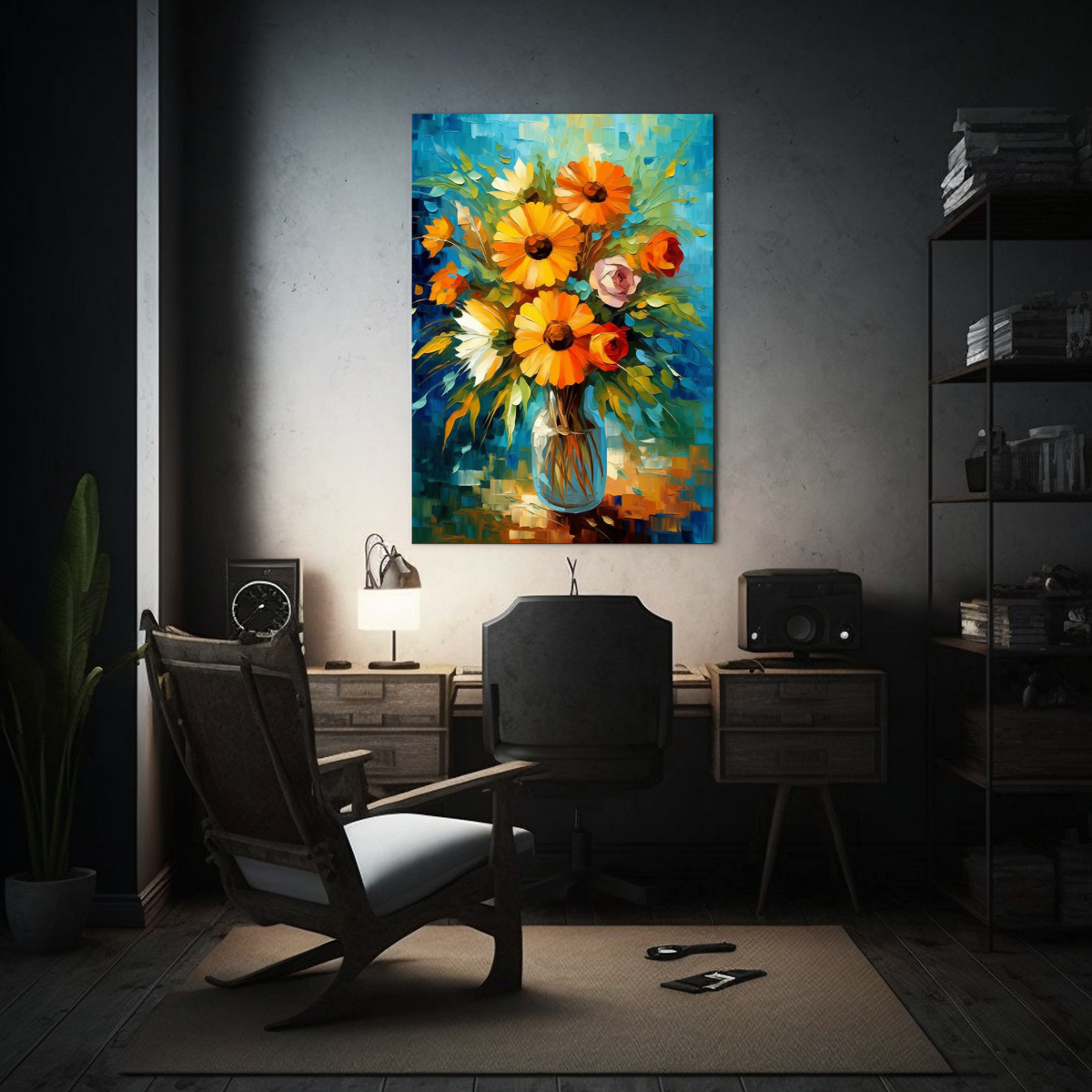 Arte De Pared Imagen Simplicidad De Flores Amarillas En Un Jarrón Azul En Estilo.
