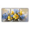Arte De Pared Impreso Brillante Flores Amarillas Y Cian, Cuadro En Lienzo