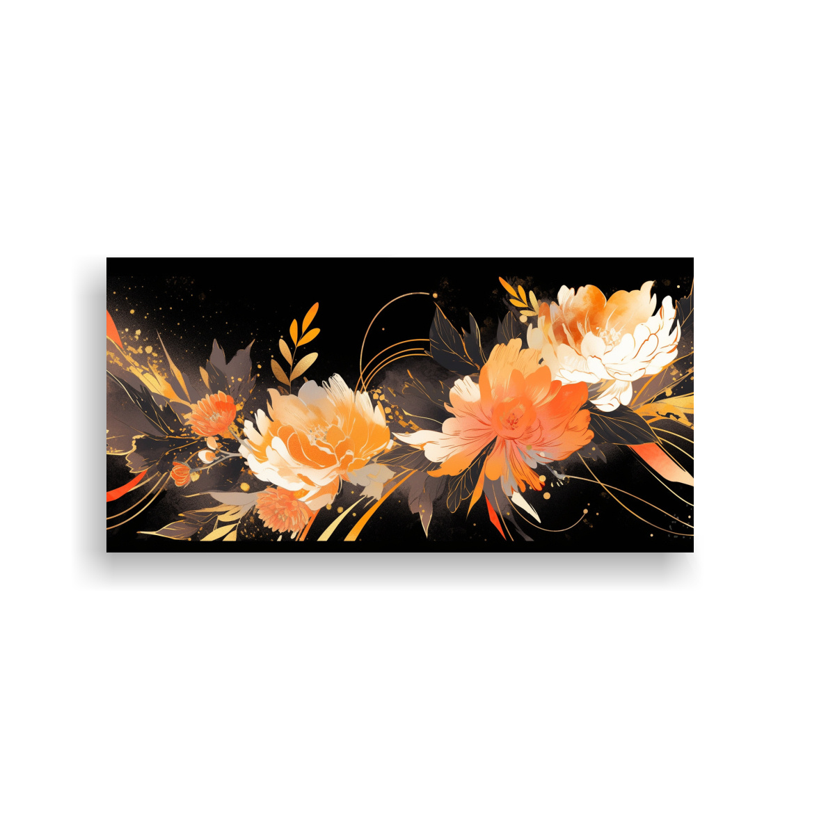 Este cuadro es perfecto para llevar un toque de elegancia a tu sala de estar Puedes colocarlo sobre un sofá gris claro para resaltar los tonos naranja y dorado Completa la decoración con cojines en tonos neutros y una lámpara de pie dorada ¡Crearás un ambiente sofisticado y moderno!
